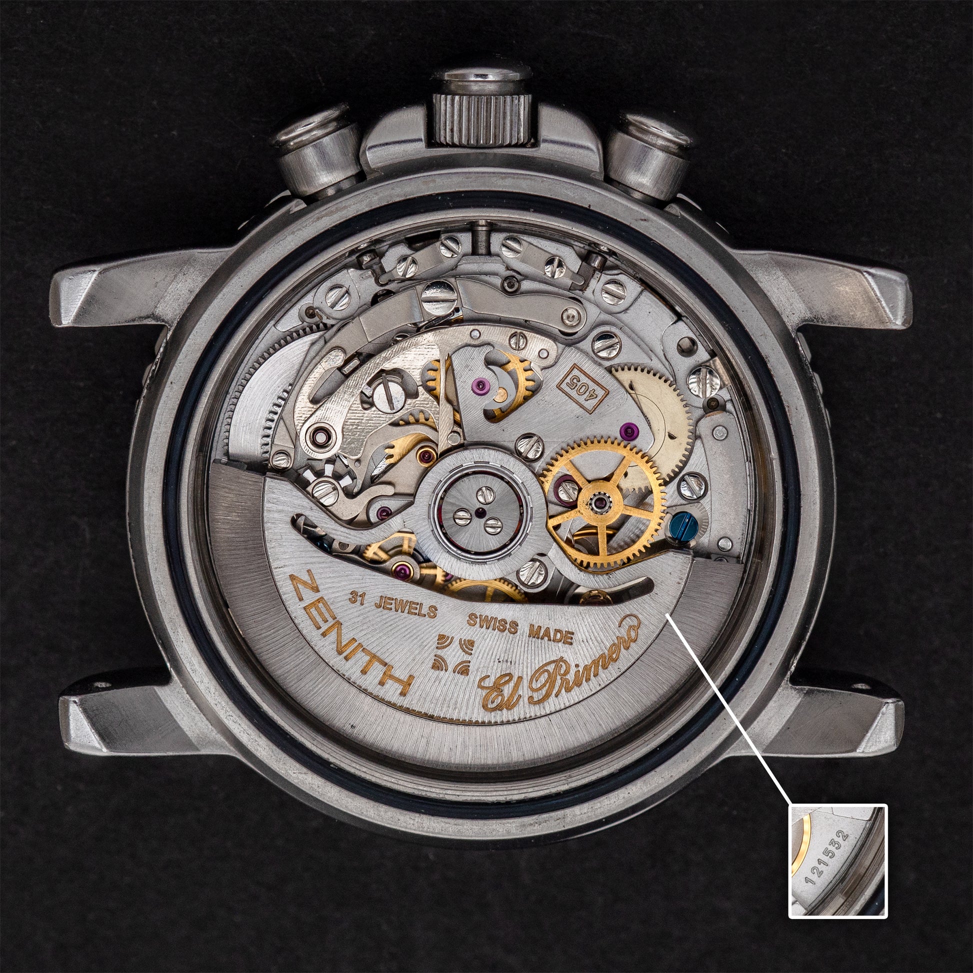Built in 1997, the El Primero "Rainbow" was made to specs set forth by the French Air Force, a fly-back chronograph capable of withstanding forces of up to 9 to 11 G's, wide variations in pressure and temperature, and a dial that was extremely easy to read.