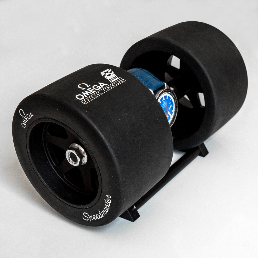 The box of the Speedmaster Schumacher was something really special. It resembled the wheels of a racing car which you had to move to the sides in order to get the watch out.