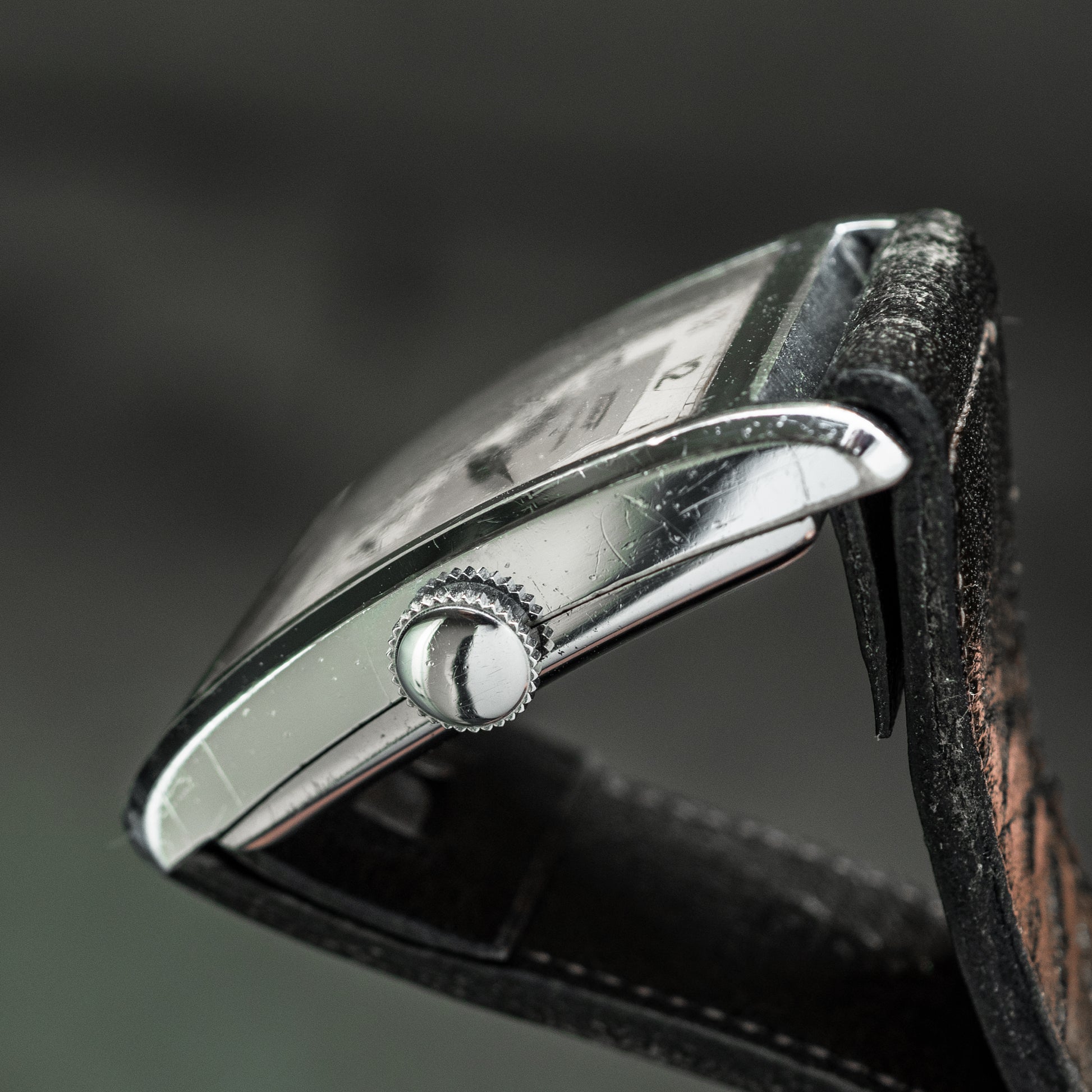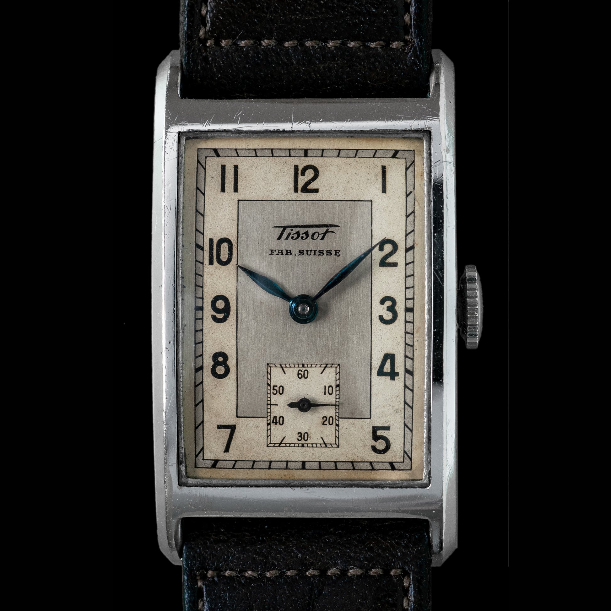 This Tissot Antimagnetique from 1938 with its stunning warm silverish metallic dial and Arabic numerals. I personally love the slightly curved "banana" tank case. This is truly a beautiful piece that any watch collector can appreciate.