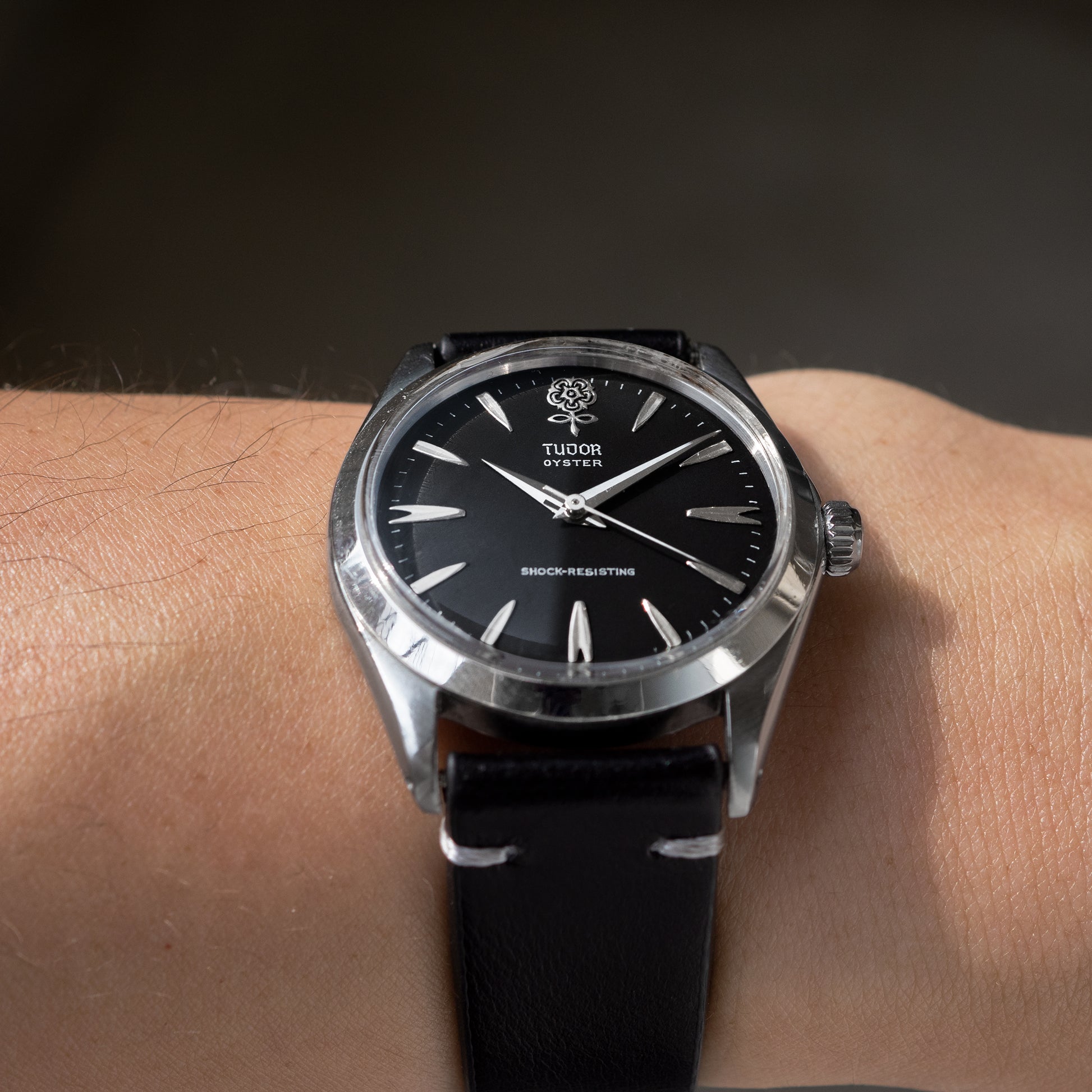 The Oyster reference 7934 was produced around the same time as Rolex's rare Veriflat Oyster reference 6512. As a result, there are many similarities between the two models with Tudor being the more affordable option. We recommend jumping on the opportunity to add this vintage reference to your collection.