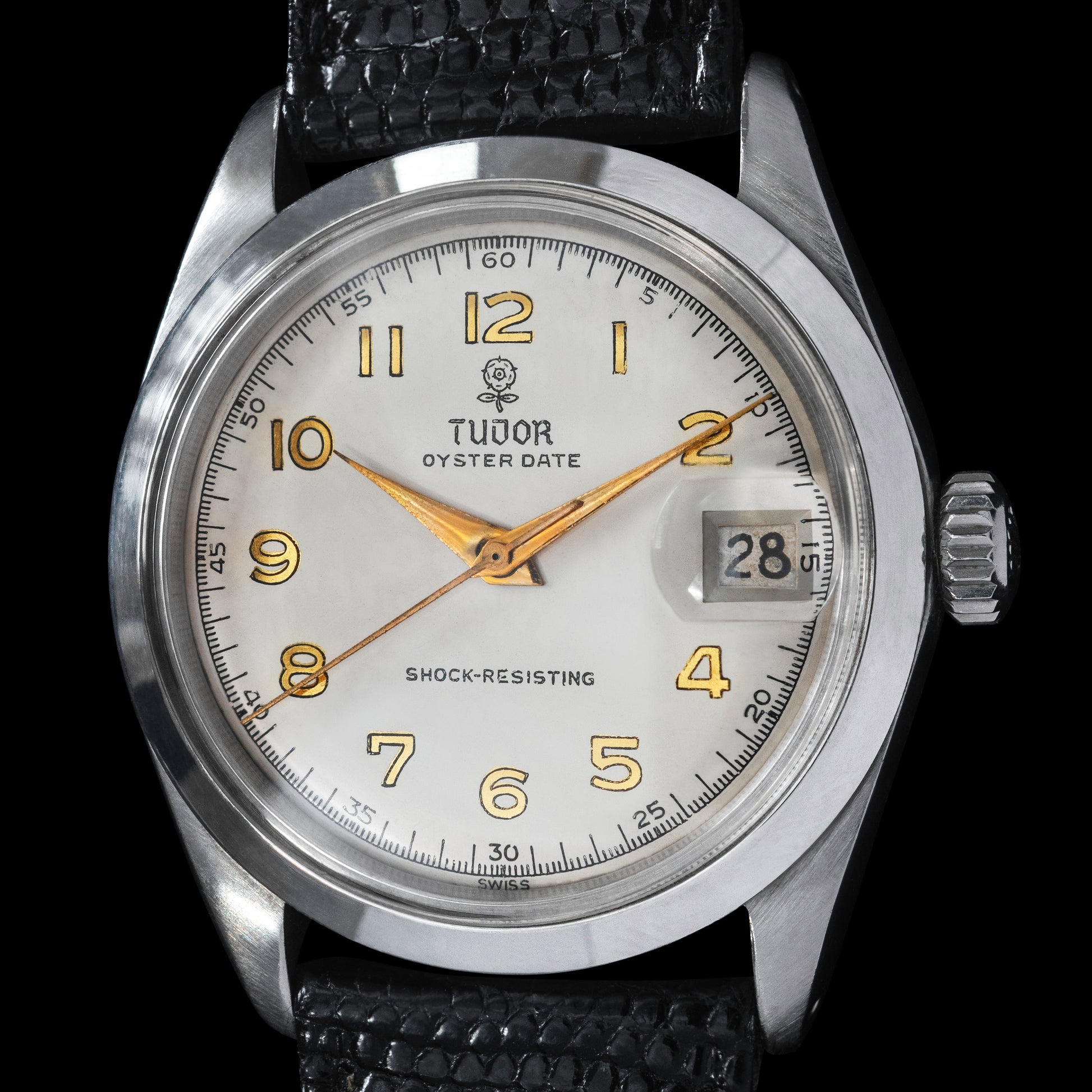 This piece features an original full numeral dial with gold gilded numbers which is quite rare for Tudor at the time.