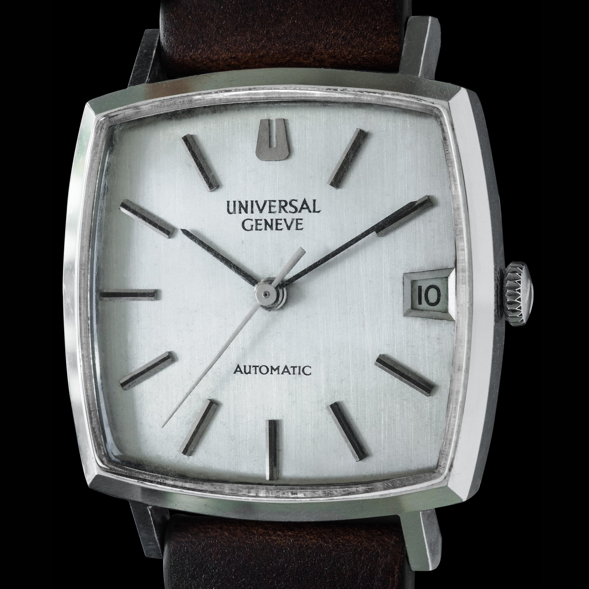 This rare Universal Geneve Square Case watch from 1970 offers the company's famous mirco-rotor automatic movement.