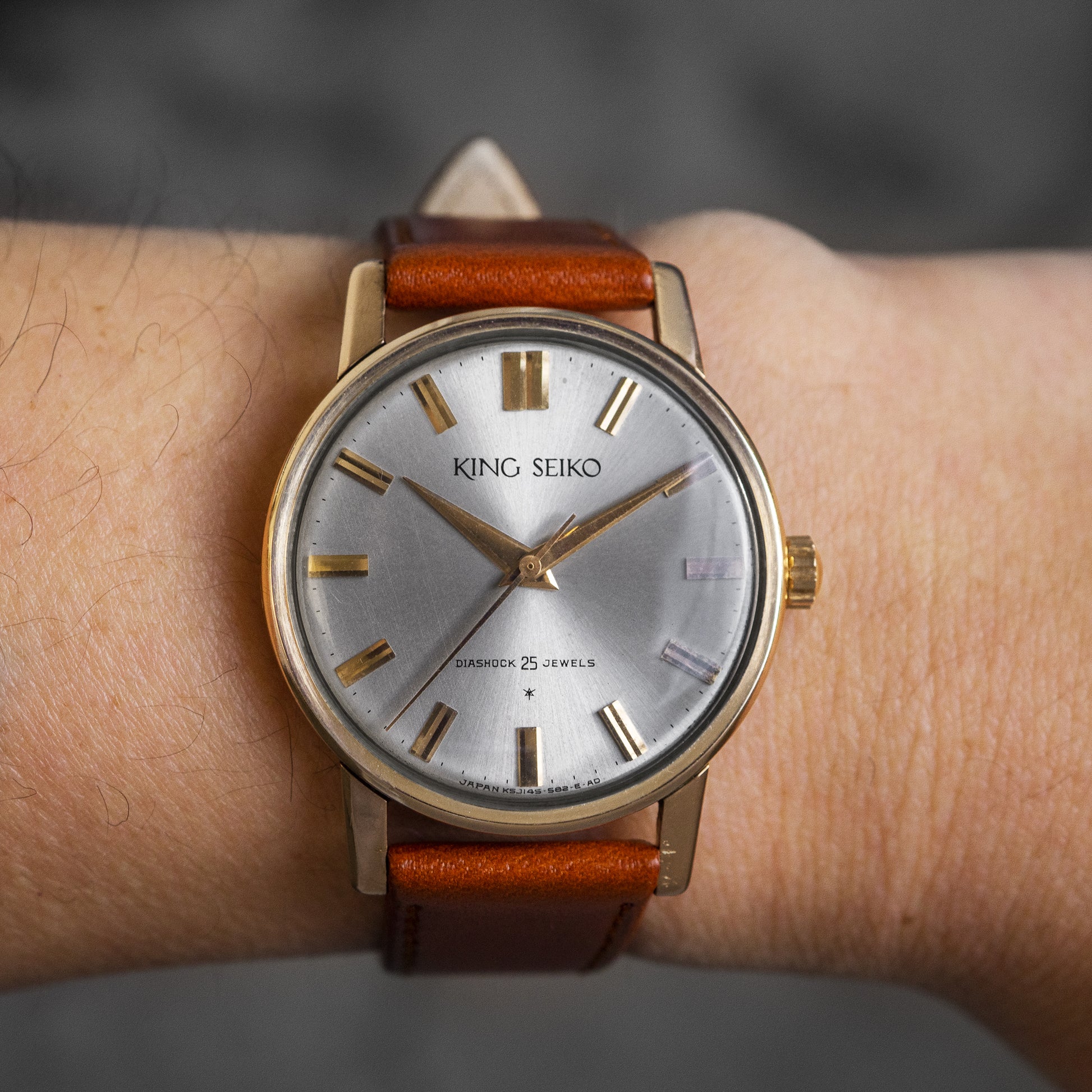 Instead of the often seen "KS" logo at 6 o'clock, it has the more rare "King Seiko" logo at 12 o'clock.