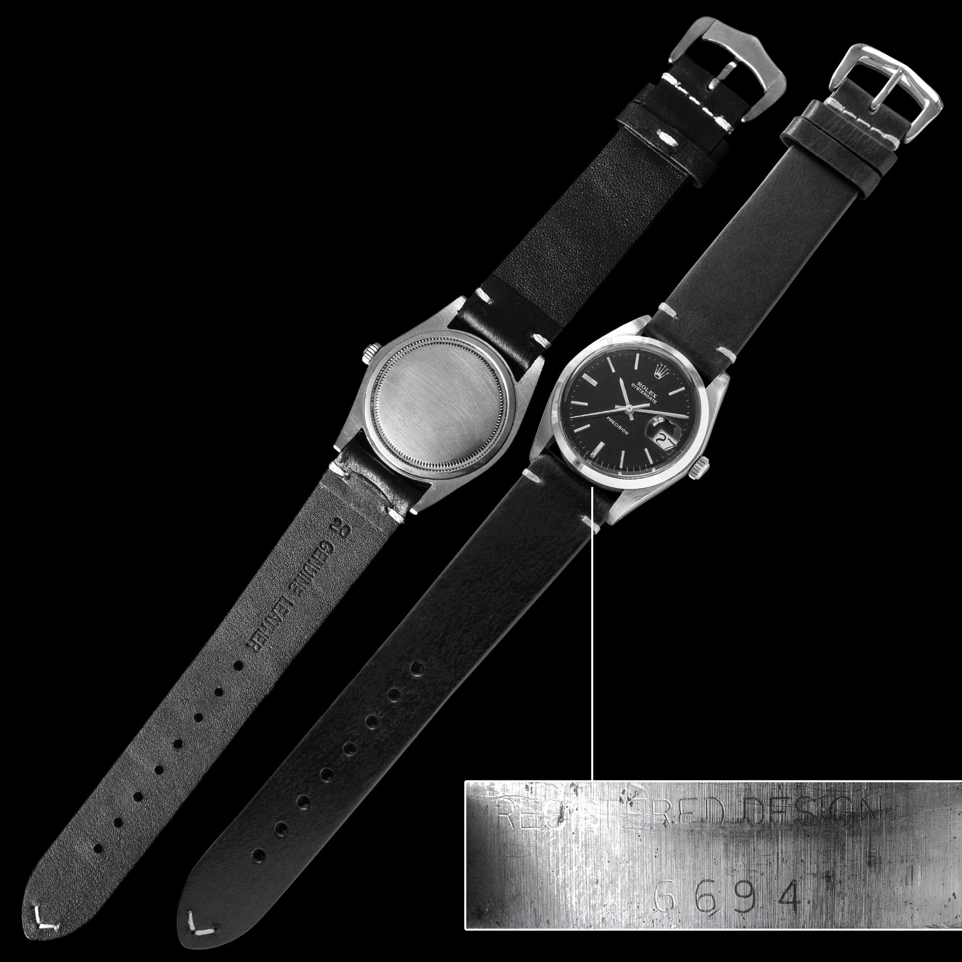This vintage Rolex Oysterdate Precision manual winding watch from 1970s is a real beauty to see in person. With is glossy black dial and silver hands/indexes.