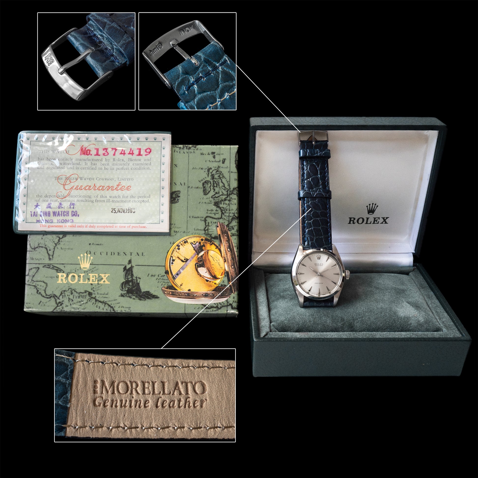 This vintage Rolex Precision manual winding watch from 1966 is a real beauty to see in person. Also it comes with its original box, guarantee paper, with brand new Italian made leather strap by Morellato.
