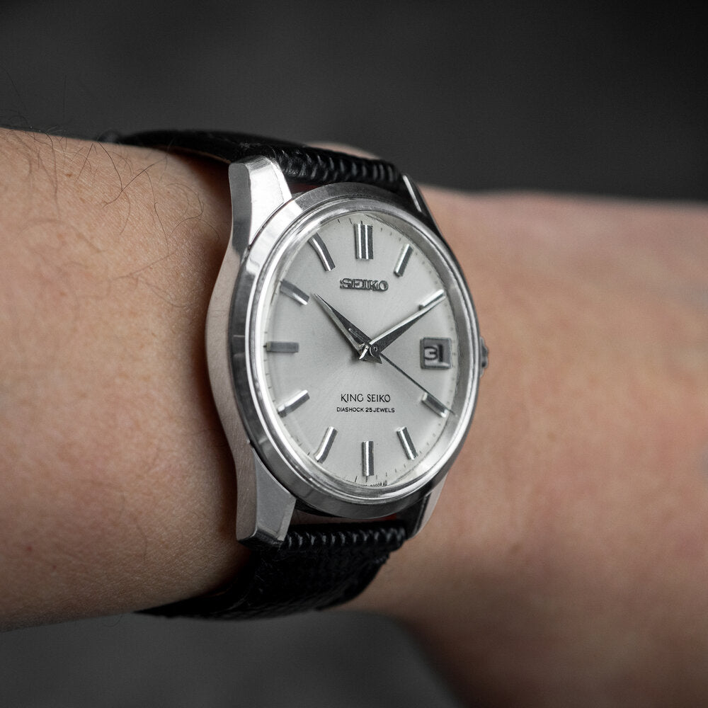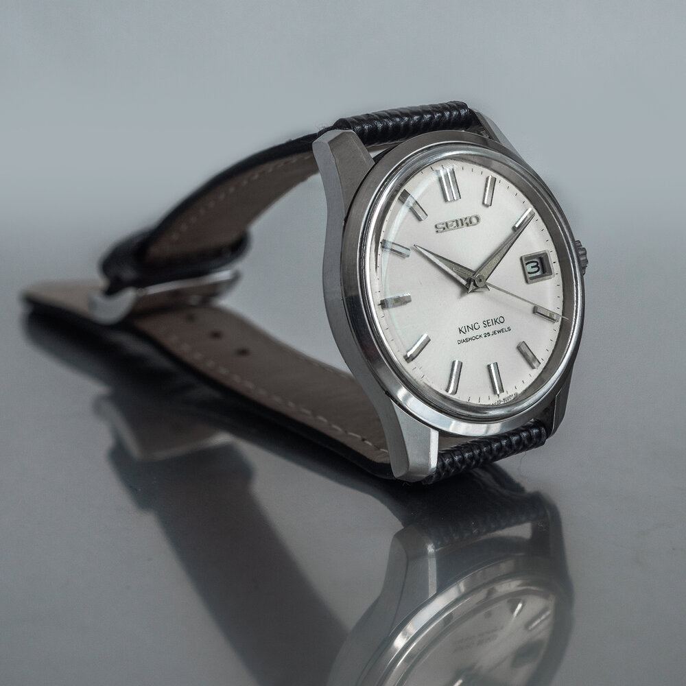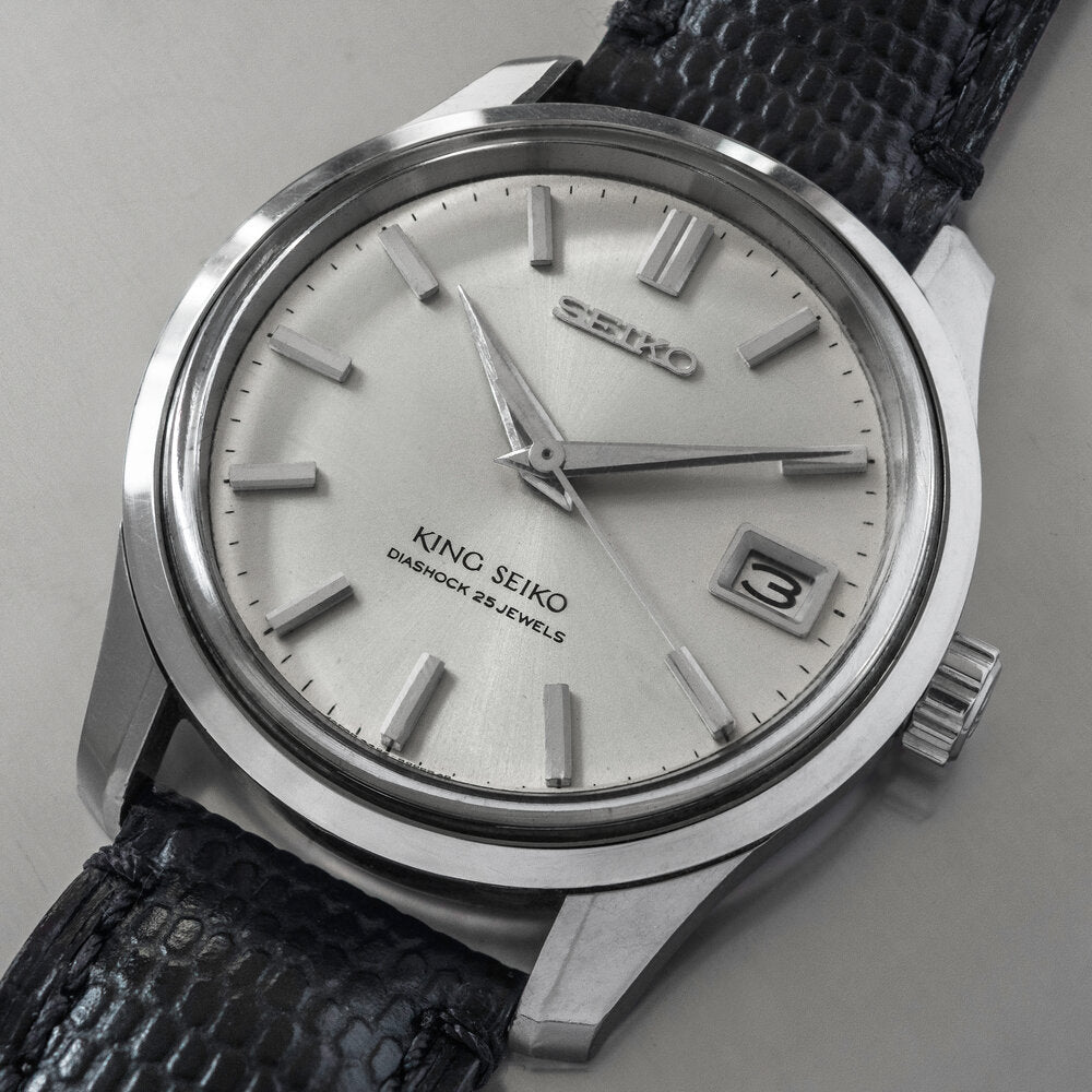 This 2nd Generation King Seiko (KS44) is from 1965. Instead of the often seen "KS" logo at six o'clock, it has the more rare "King Seiko" logo.