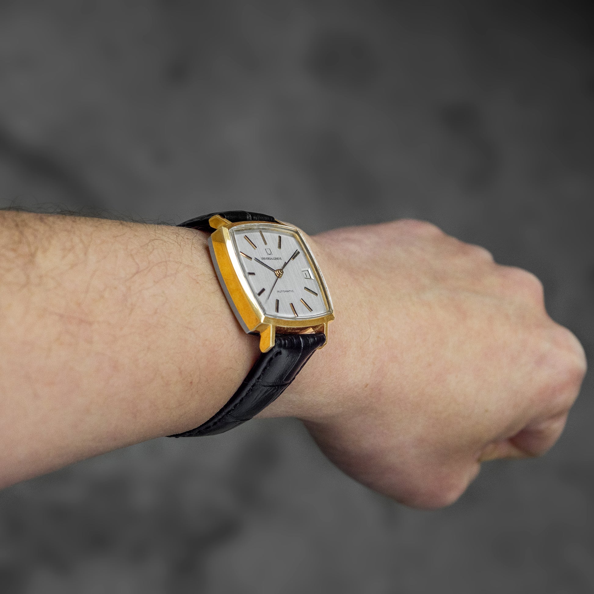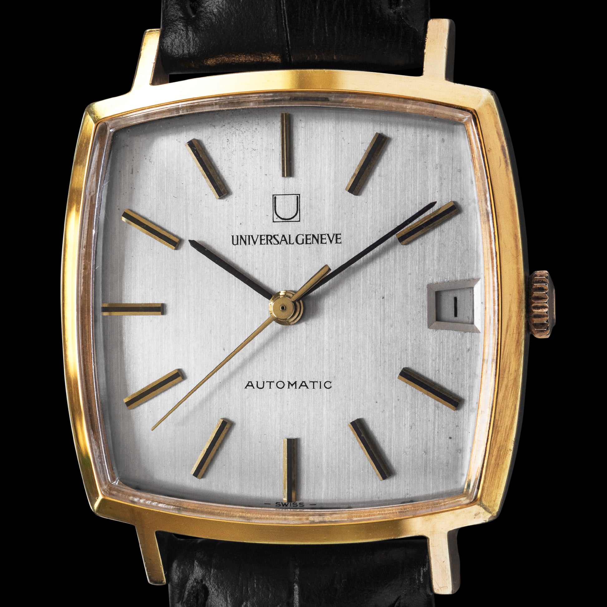 This rare Universal Geneve Square Case watch from 1969 offers the company's famous mirco-rotor automatic movement.