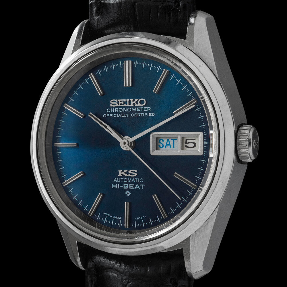 This King Seiko 56KS Chronometer from 1972 features a beautiful blue dial and a unique front loader case design. This is truly a beautiful piece that any watch collector can appreciate.