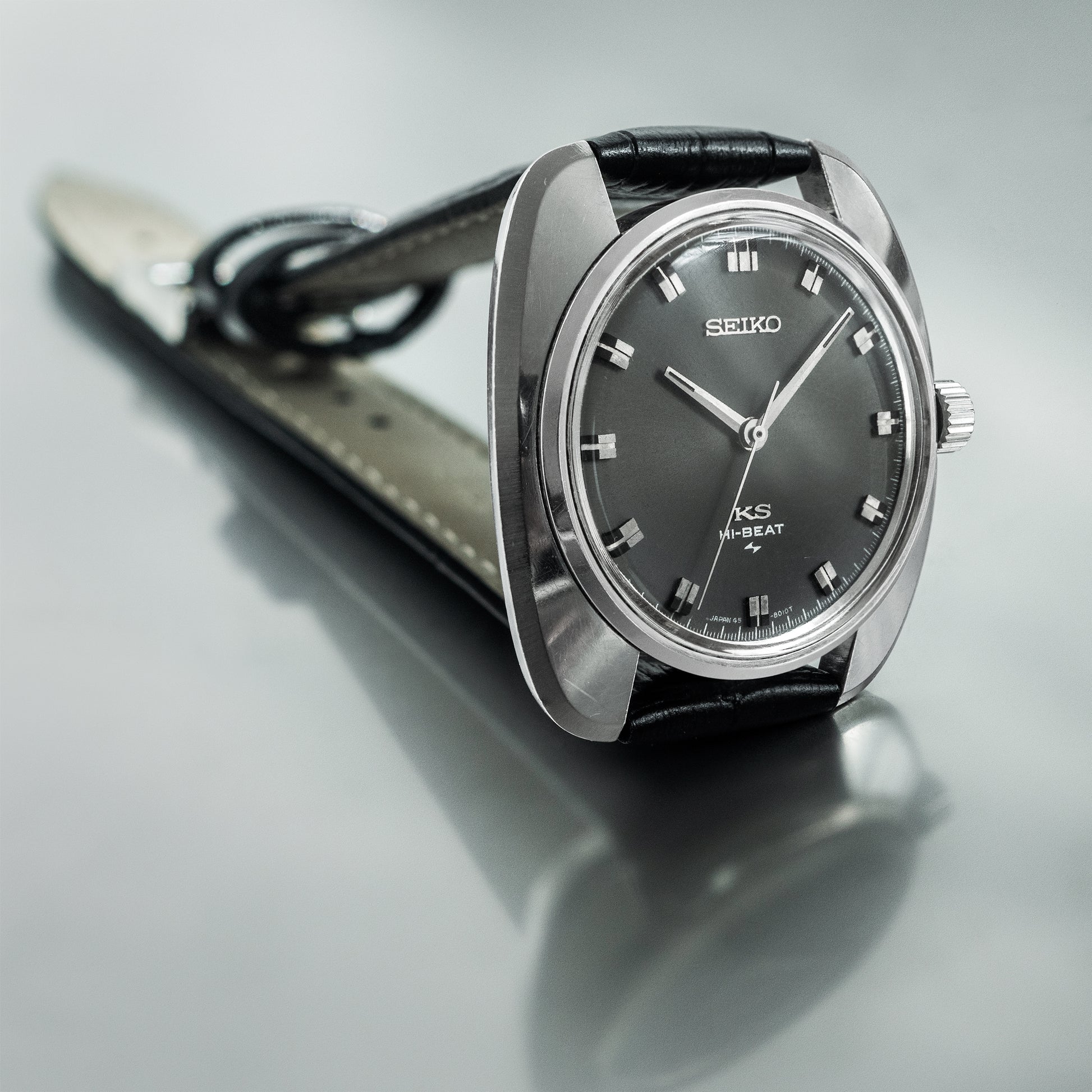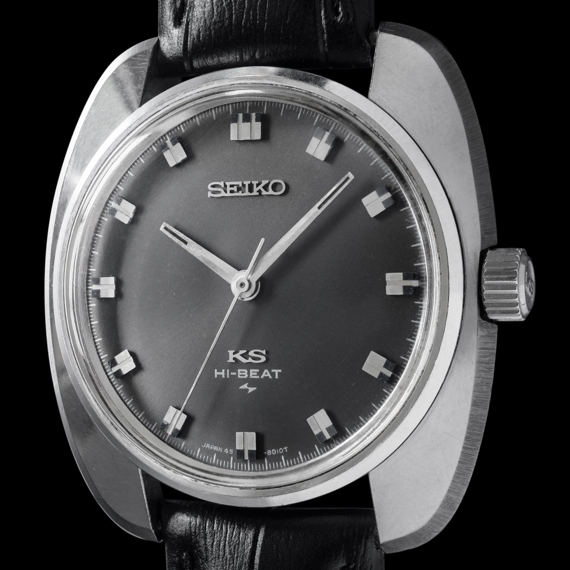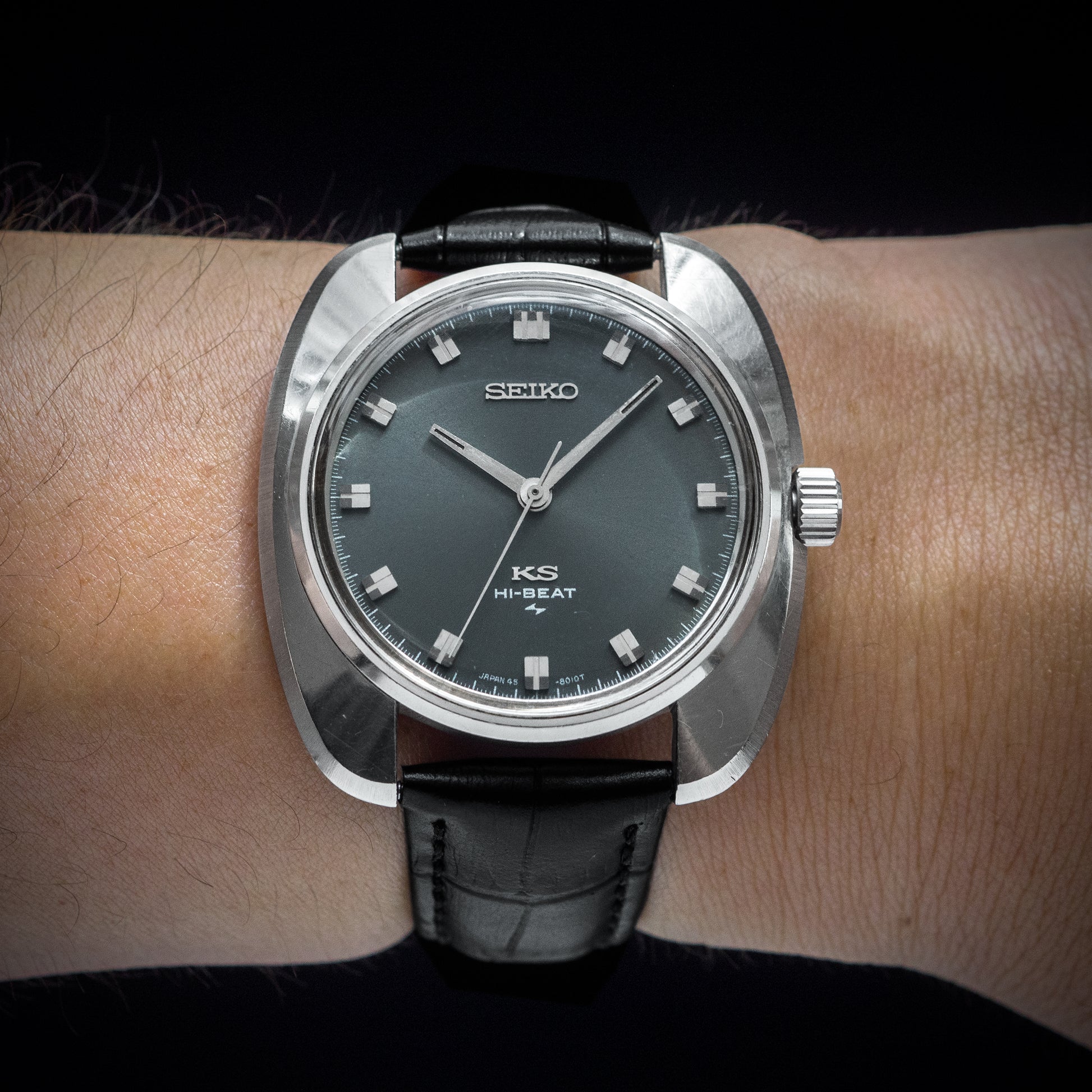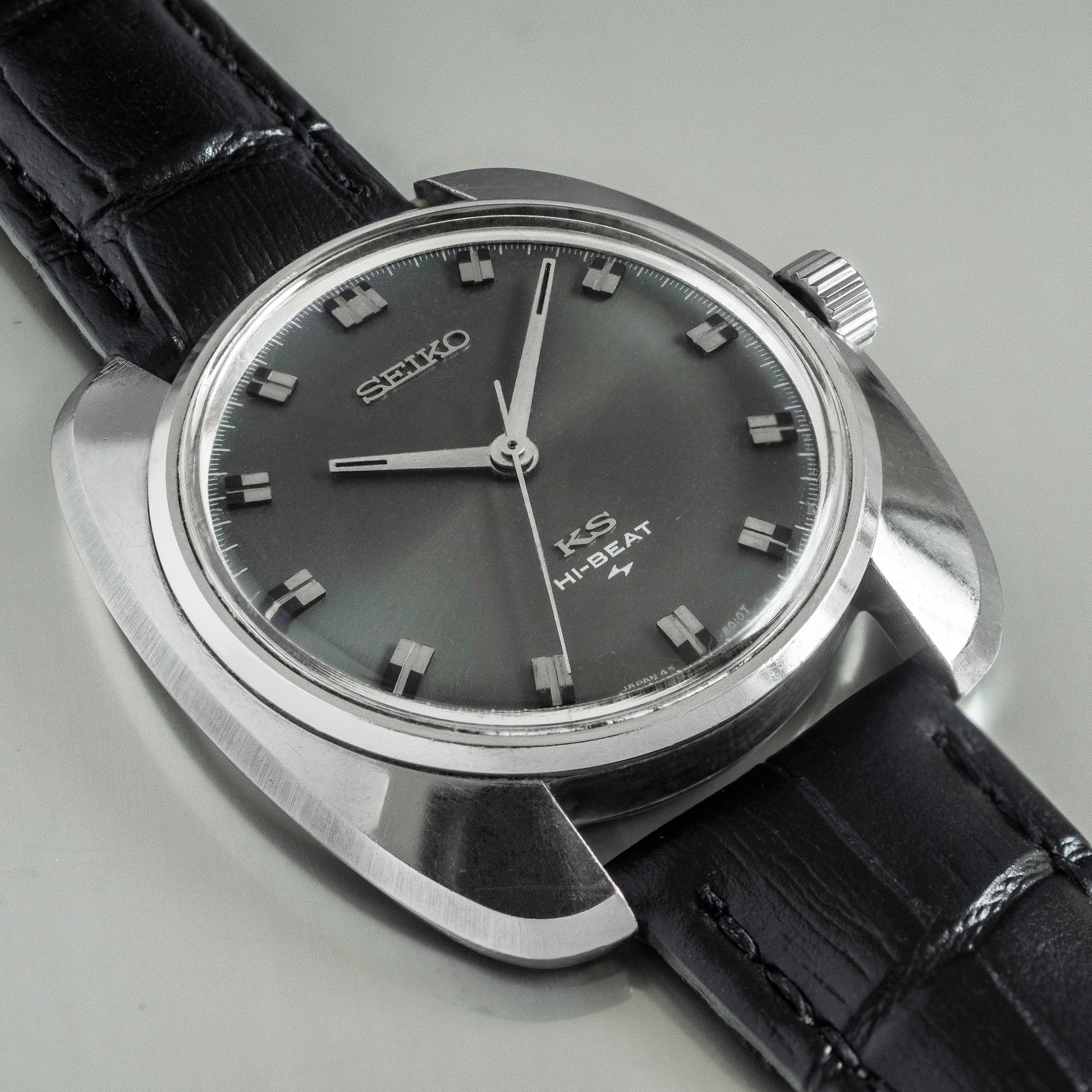 This King Seiko 45KS is from 1969. It features a high beat movement and beautiful grey dial.