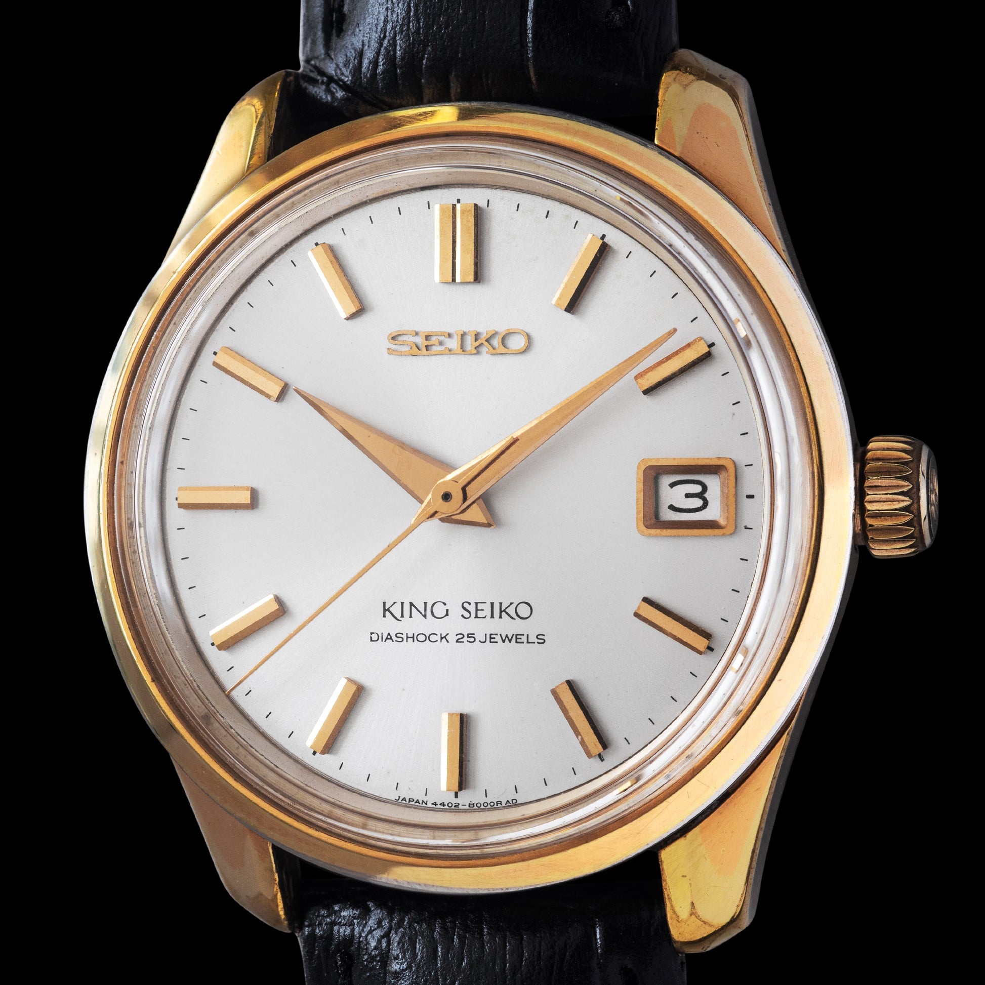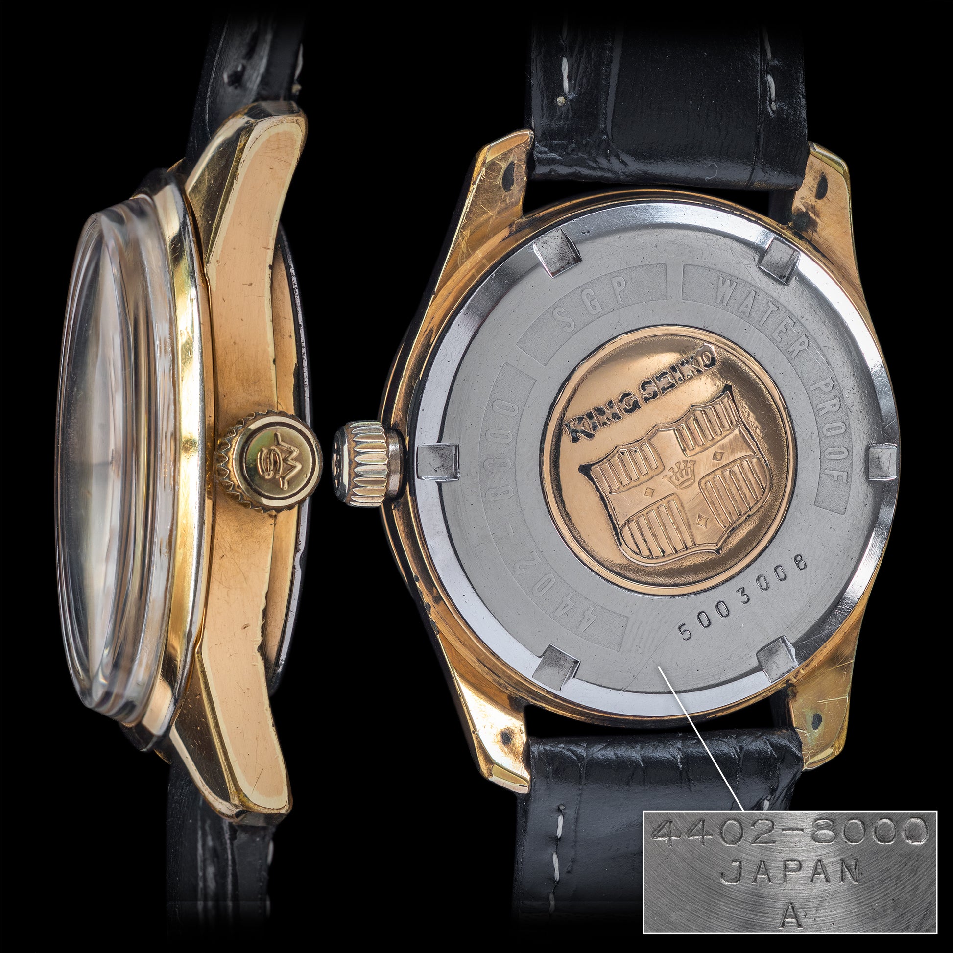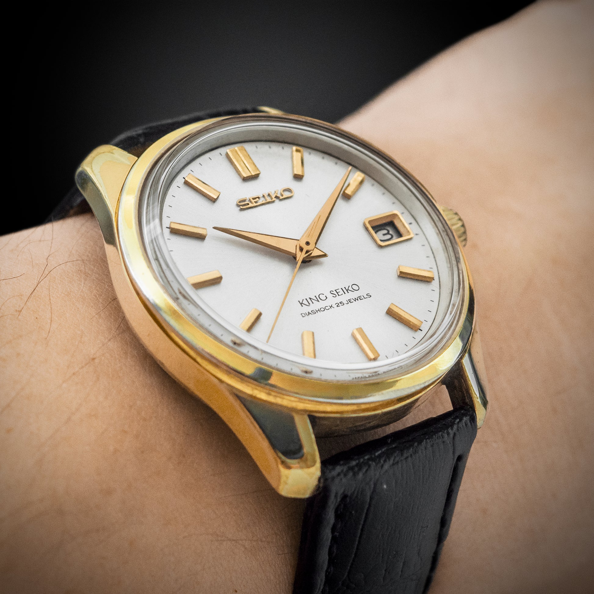 This 2nd Generation King Seiko (KS44) is from 1965. Instead of the "KS" logo at the six o'clock position, it has the more rare "King Seiko". It also comes with its original buckle and box.