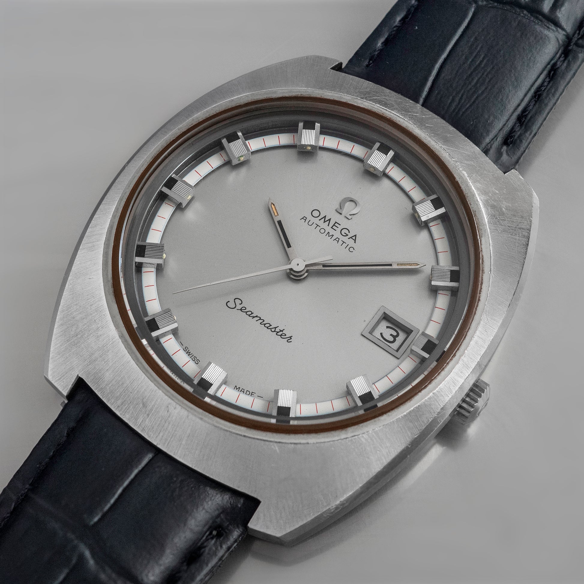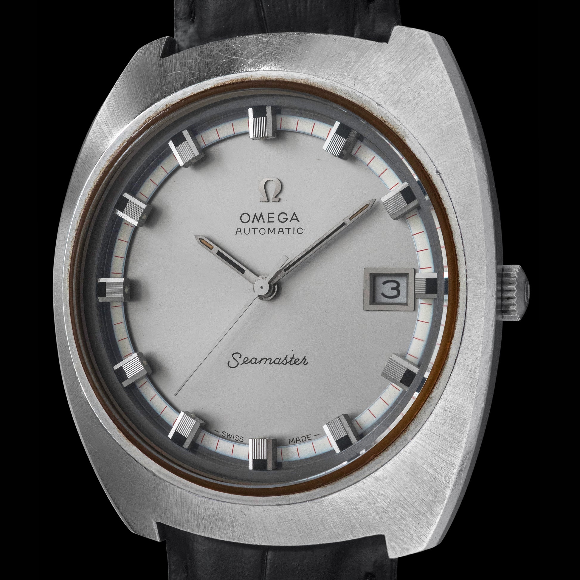 This Omega Seamaster from 1970 features a beautiful silver dial with layered indexes. This is truly a beautiful piece that any watch collector can appreciate.