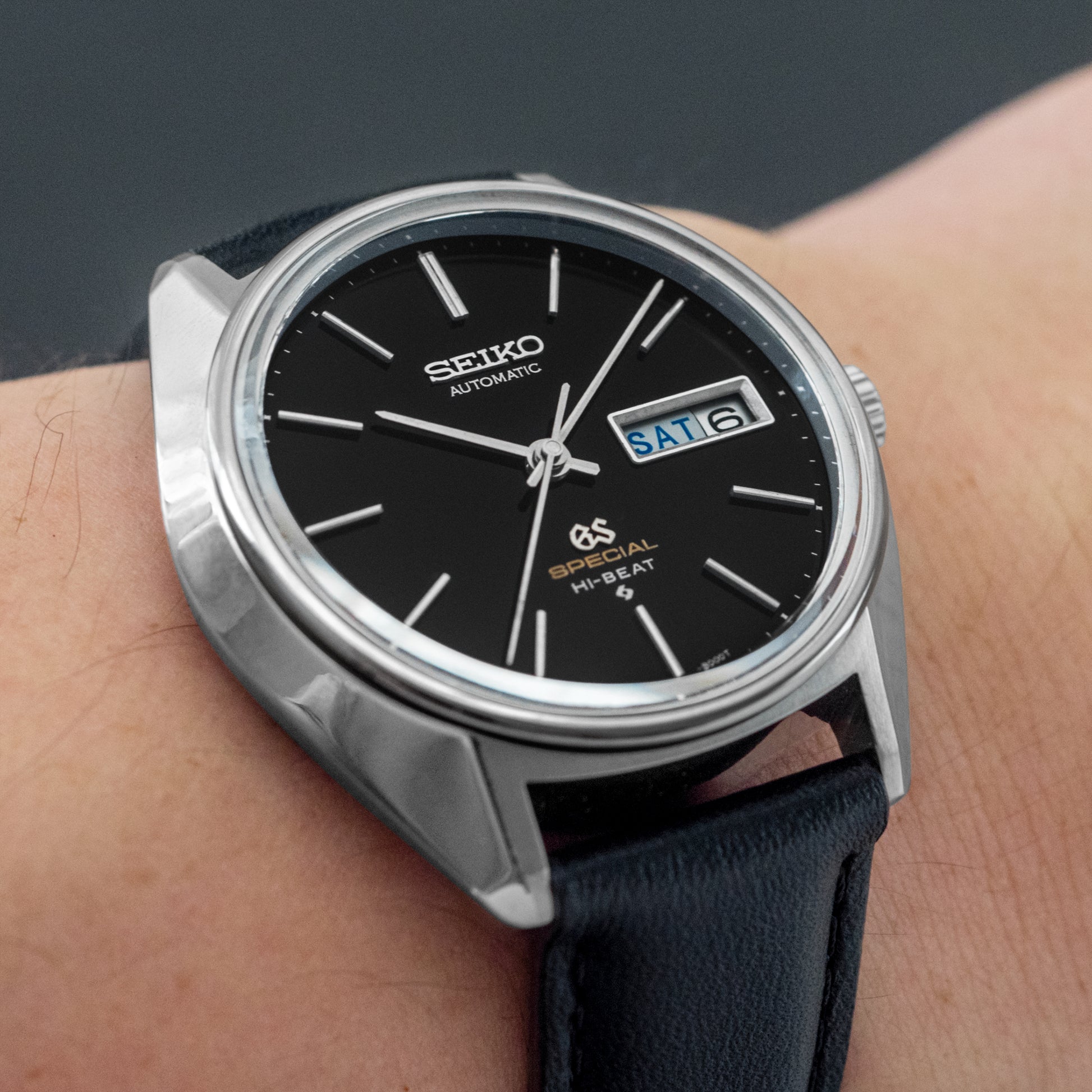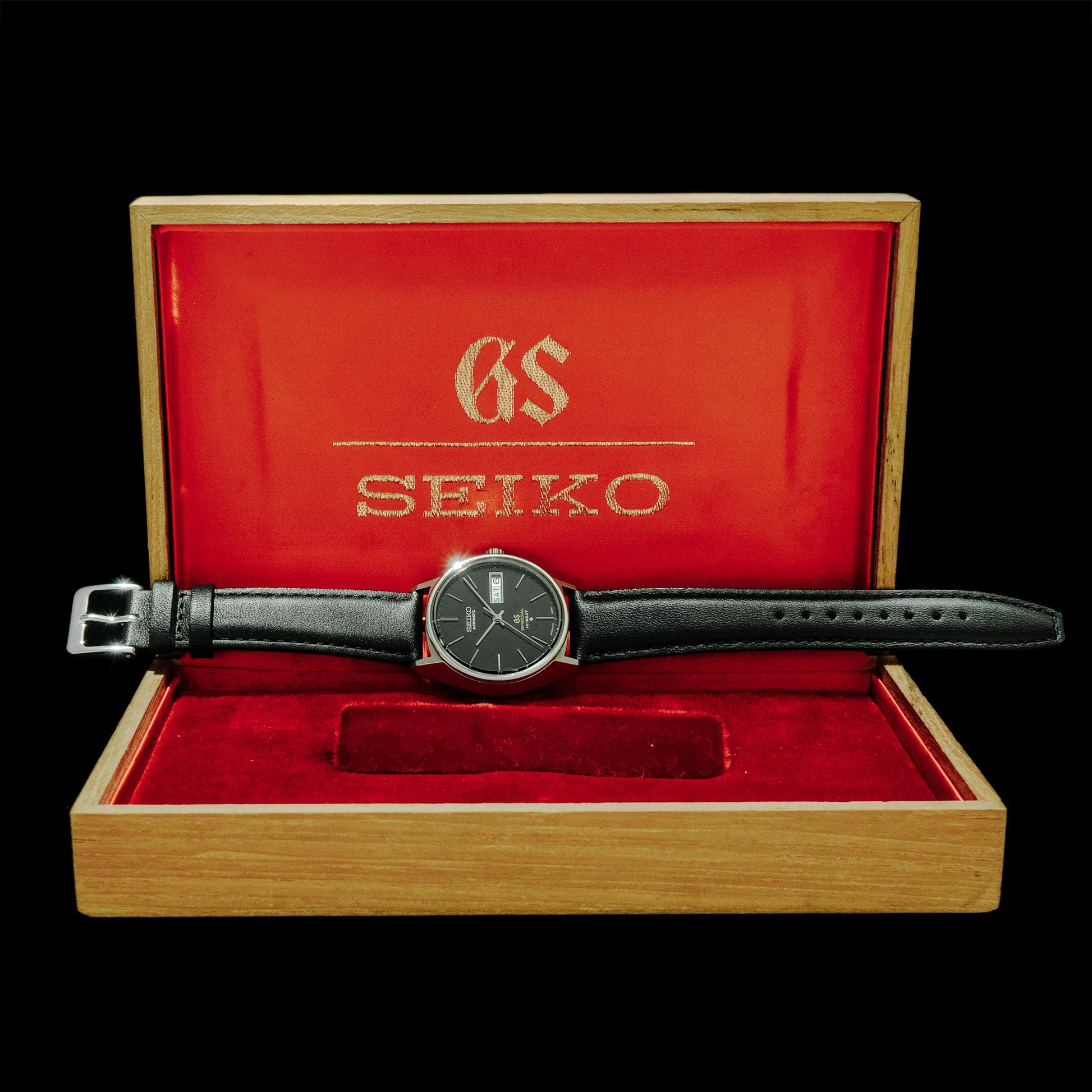 Grand Seiko 61GS Special from 1970 featuring a stunningly beautiful black dial. It also comes with its original Grand Seiko watch box and new Seiko leather strap. The watch has been serviced in June 2021.
