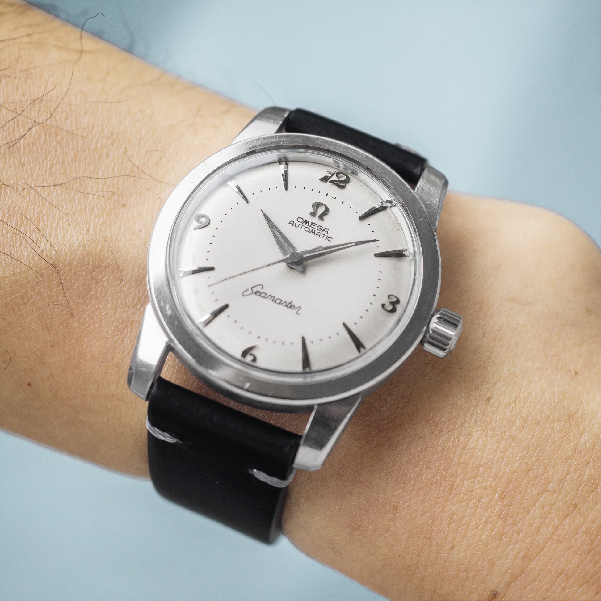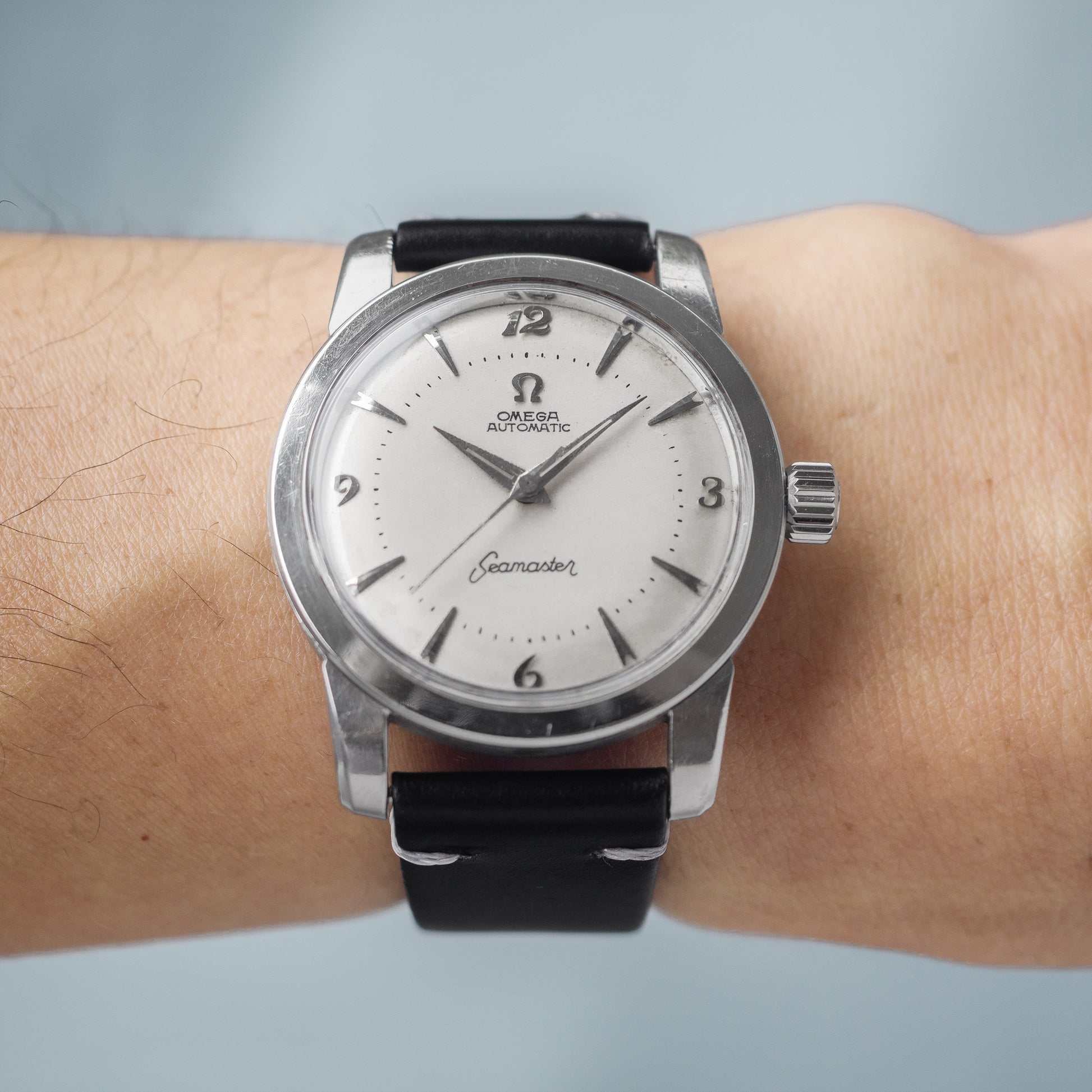 This 1953 Omega Seamaster 1st model features the desirable explorer-style dial with applied indexes, offering a refined yet understated elegance on the wrist. Its classic proportions and clean, balanced design embody the timeless charm that has made the Seamaster line a favourite among collectors for decades.