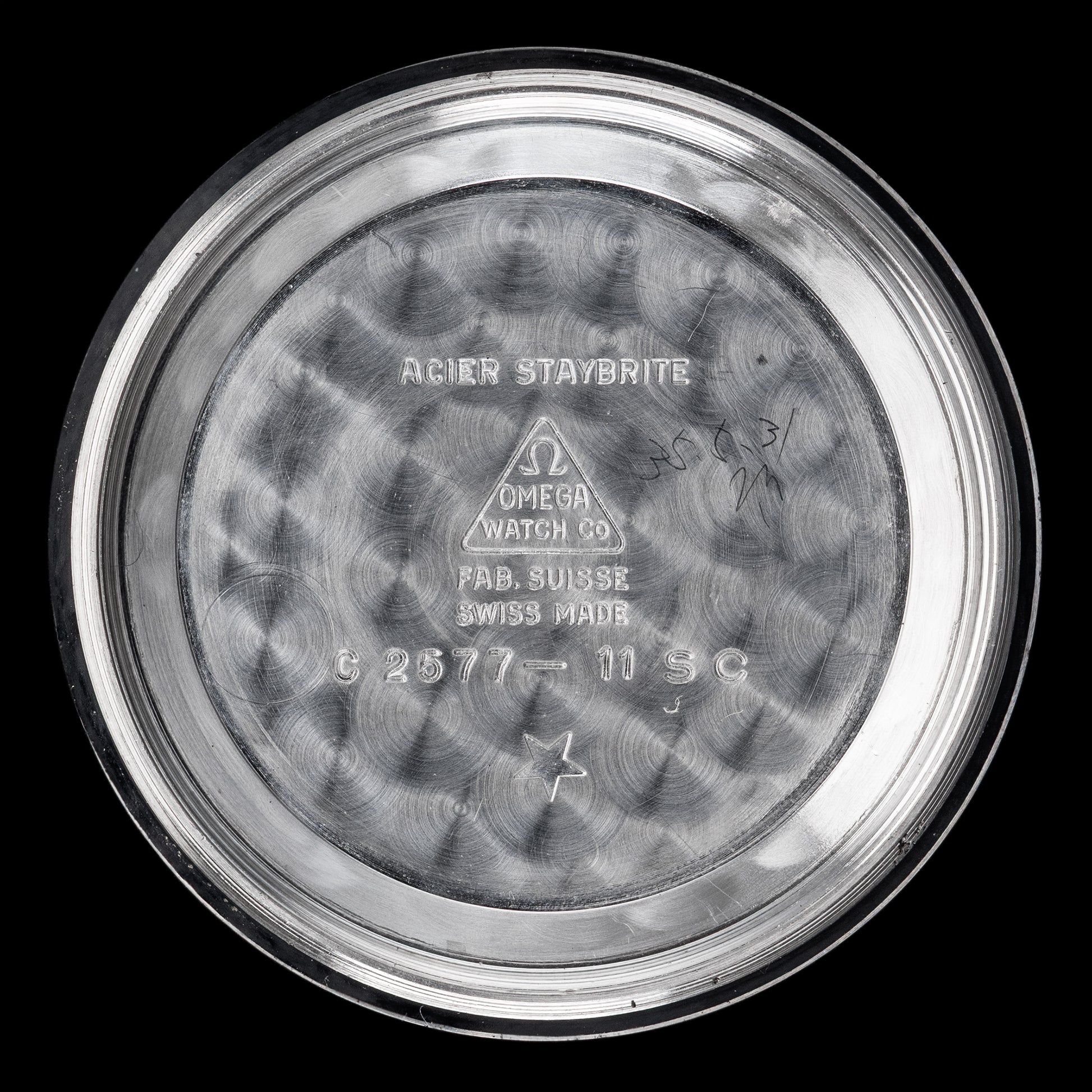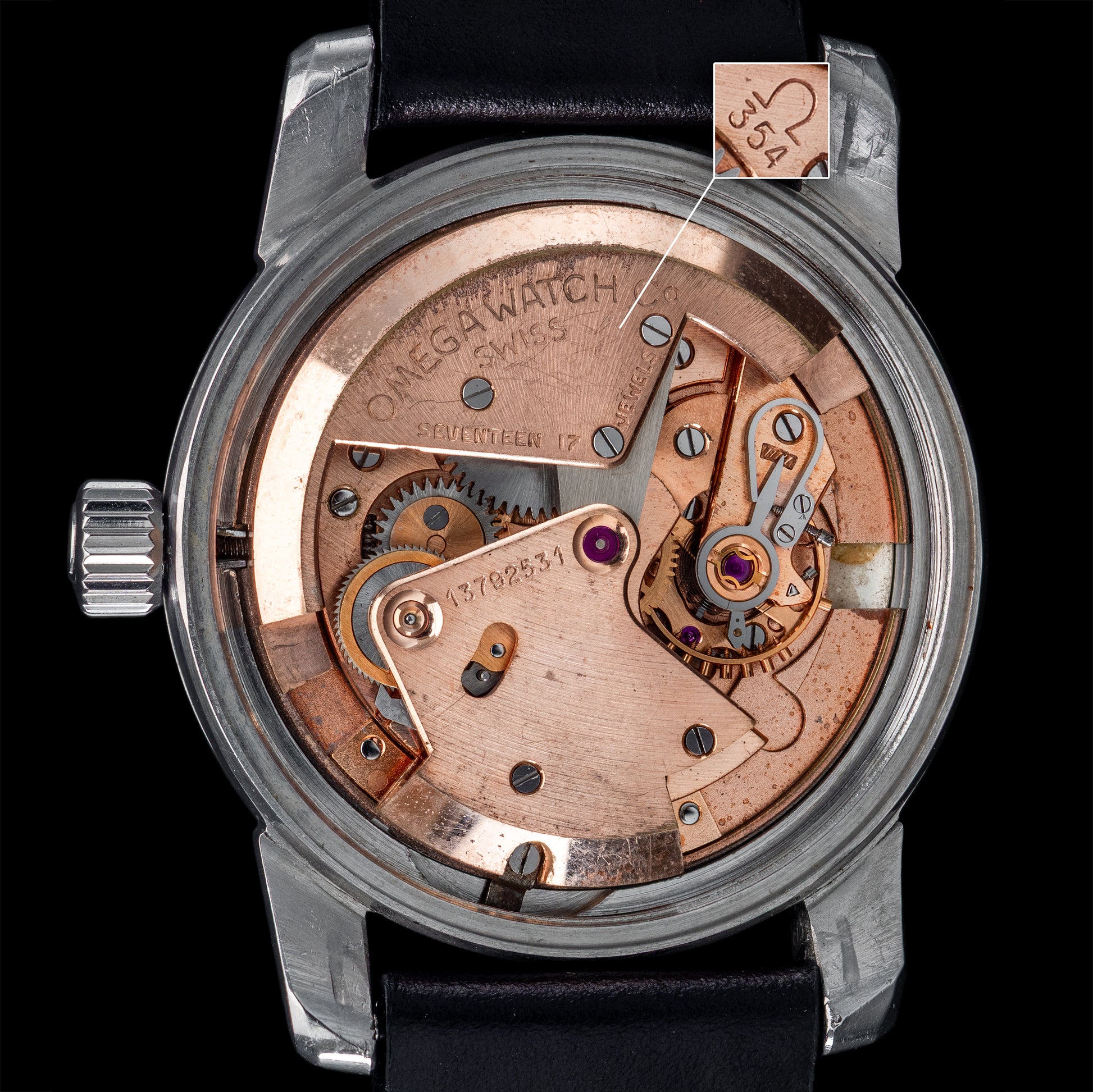 Powering the watch is the Omega Caliber 354, a revered "bumper" automatic movement. Unlike modern full-rotor automatics, bumper movements use a semi-rotor that swings back and forth between spring-loaded bumpers. This innovative mechanism, used by Omega during the 1940s and early 1950s, provides a distinctive tactile feel and audible “click” that many vintage collectors find endearing. The Caliber 354 is known for its reliability and smooth operation, making it both historically significant and mechanically satisfying.