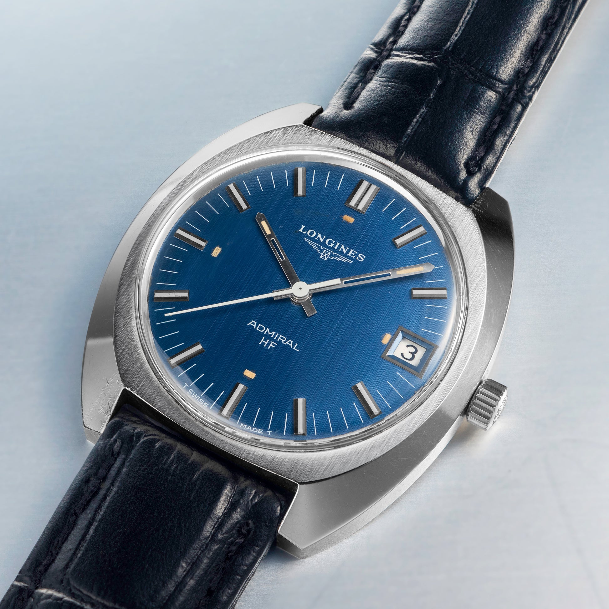The Admiral series was part of a collection produced by Longines to commemorate the brand's service as the Official Timekeeper of the 1972 Olympic Games in Munich. The ""HF"" on the dial stands for high frequency. Beating at 28,800 vph or 4 Hz, it is more than the standard of the time which gave this watch better accuracy and performance.