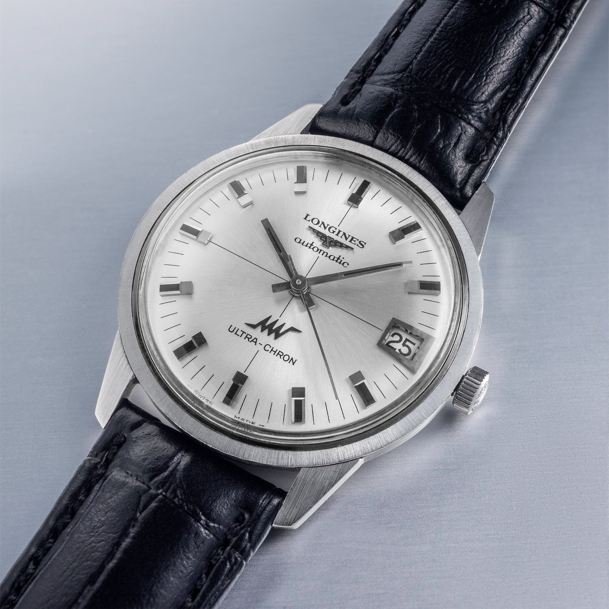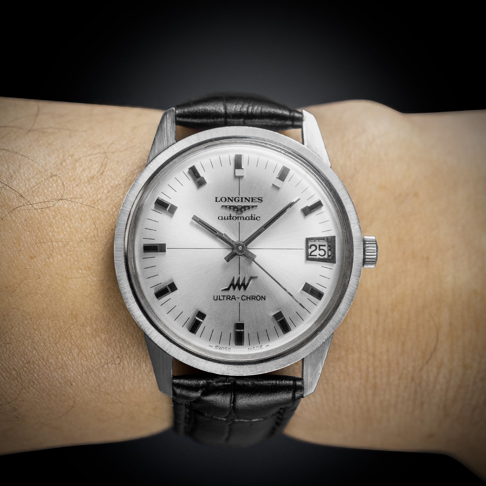 The Longines Ultra-Chron is a watch that ticks all the boxes that we require of a proper vintage dress piece. Introduced in the late 1960s and produced for only six years, the Ultra-Chron is an early attempt by the brand to mass-produce a mechanical watch that, according to their advertisements, was "the world's most accurate watch... guaranteed accurate to within one minute per month." This was achieved with the hi-beat Caliber movement, which had a beat rate of 36,000 beats per hour.