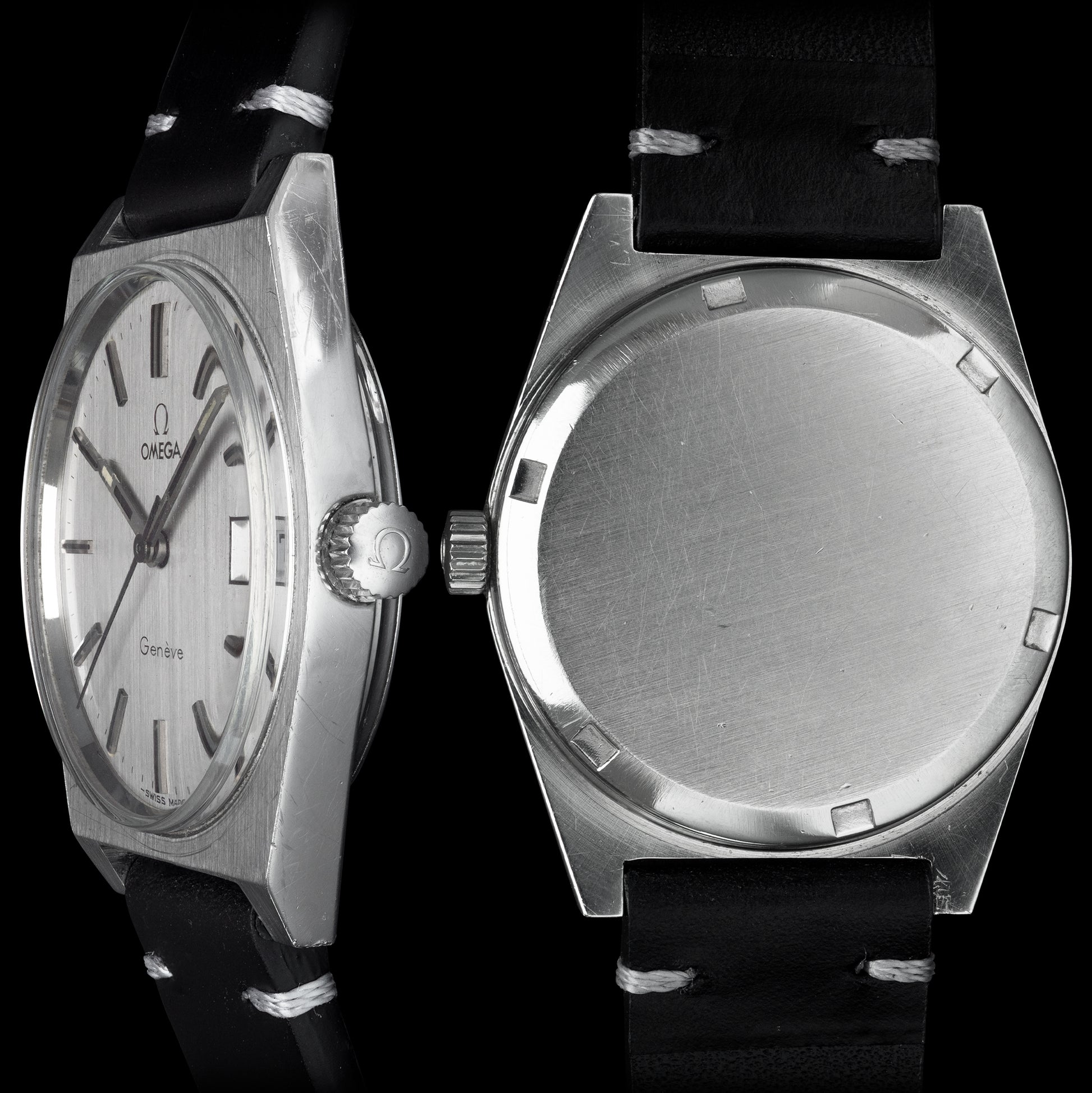 The Genève line was introduced by Omega in the 1950s as a more versatile alternative to its professional tool watches such as the Seamaster, Speedmaster, and Railmaster. Intended for general use, the Genève series gave Omega’s designers greater freedom to experiment with a wide variety of styles and concepts. As a result, the line includes a broad spectrum of models—from bold and unconventional to timelessly elegant. The example offered here belongs to the latter category: a classic, understated dress watch that reflects the refined side of mid-century Omega design.
