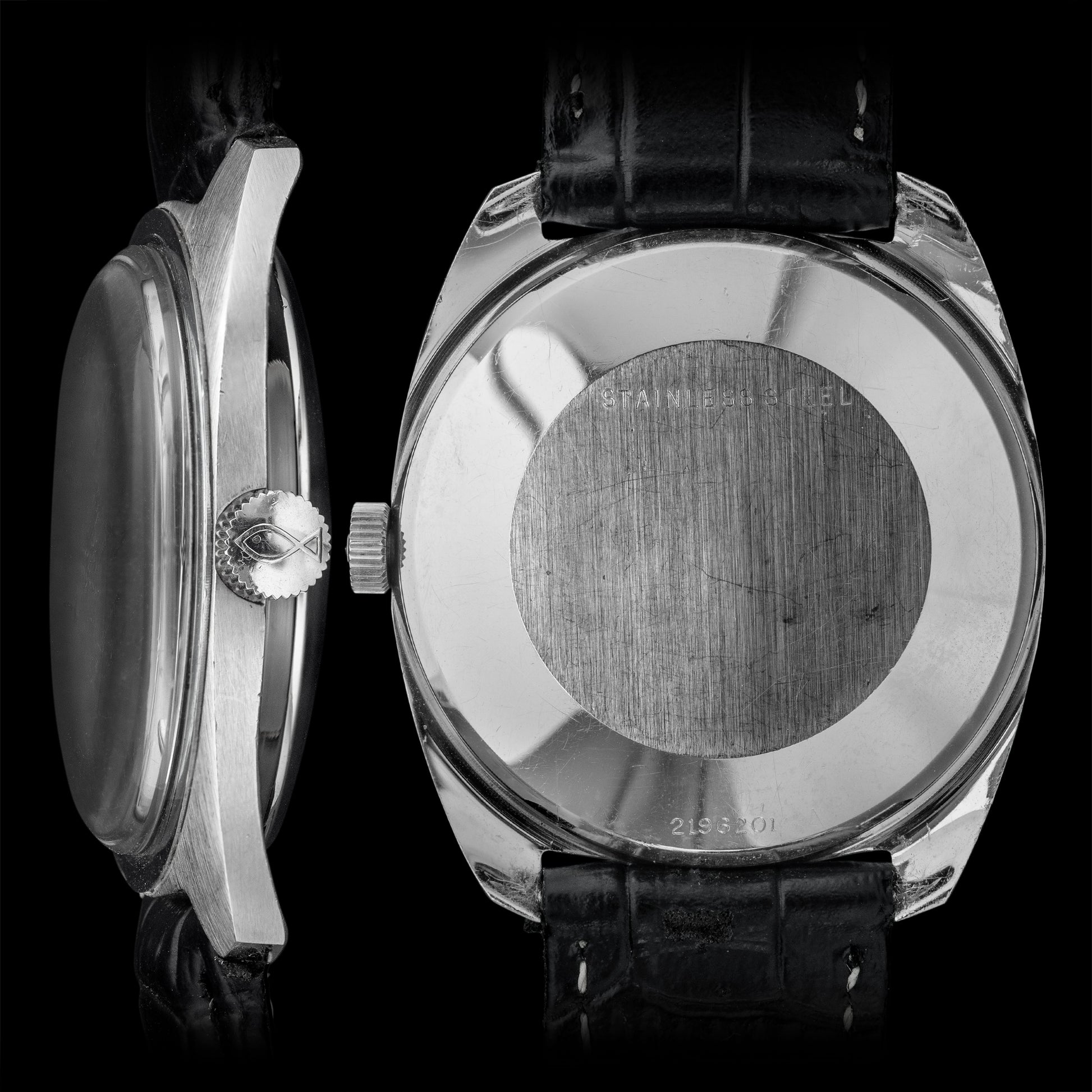 The fish symbol engraved on the crown was used by IWC throughout the mid-20th century to indicate that the crown was designed as part of a water-resistant case construction. Although not a screw-down crown, the fish emblem signified that the watch met IWC’s internal standards for water resistance—an important assurance during the 1960s and 1970s, when durability and everyday practicality were becoming increasingly valued in luxury watchmaking.