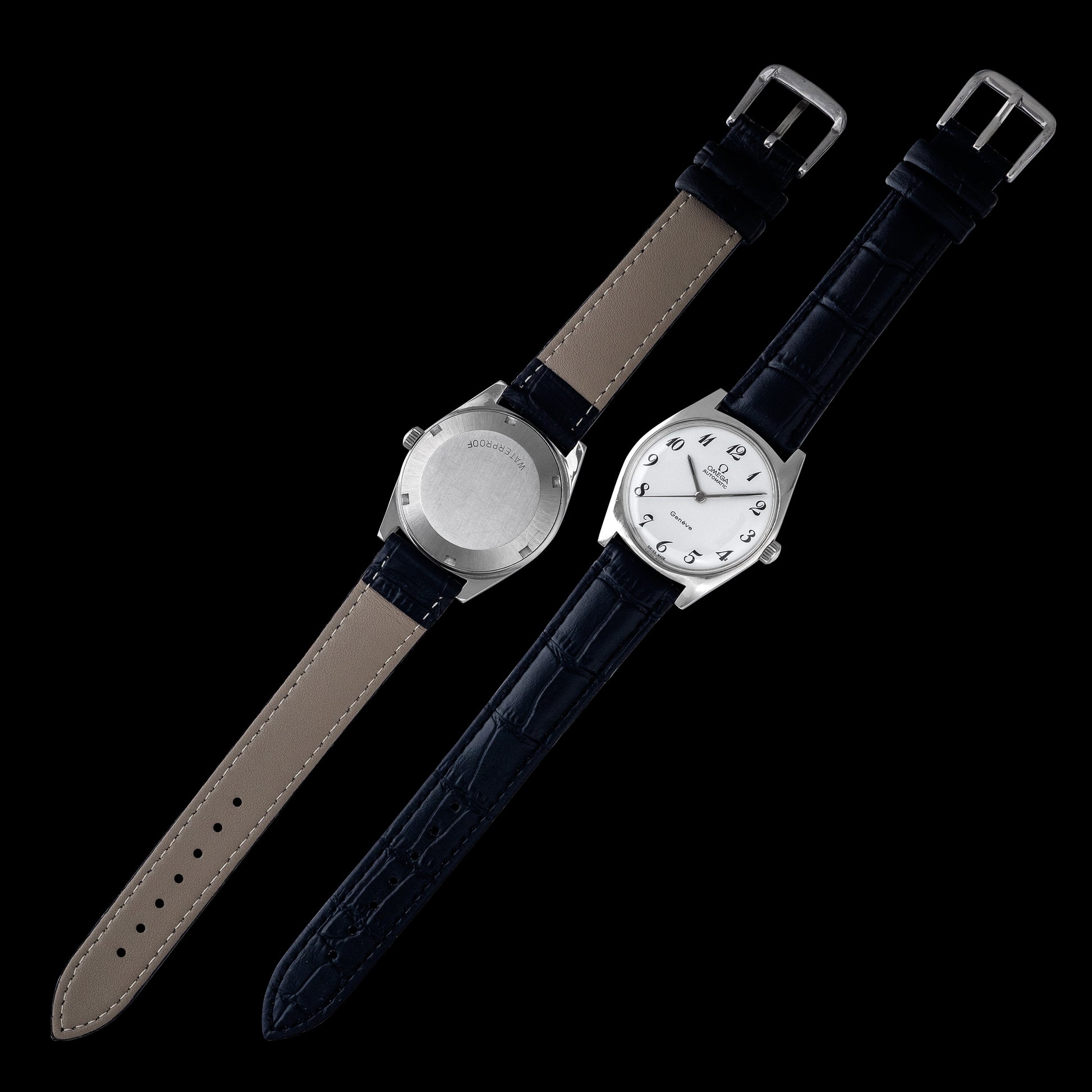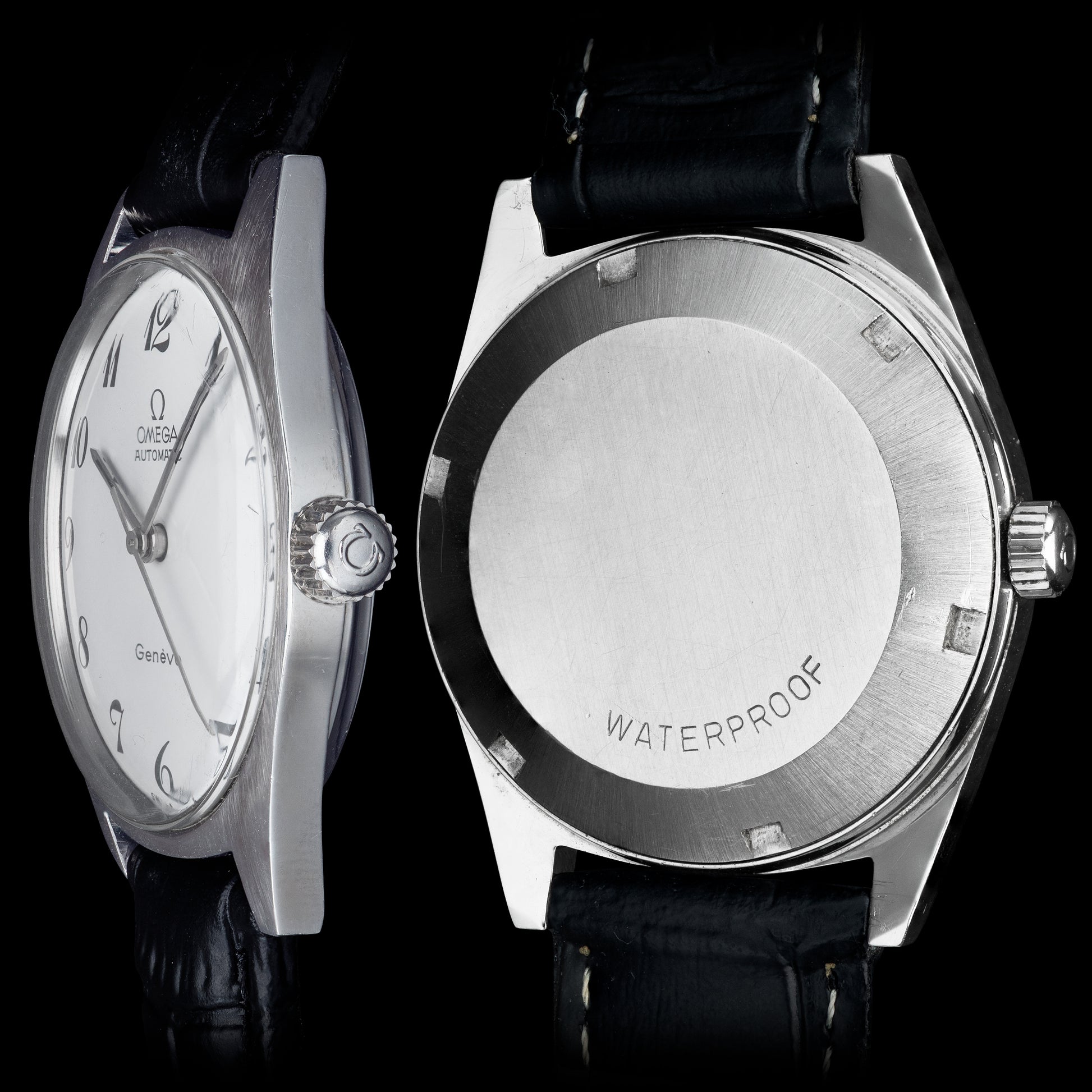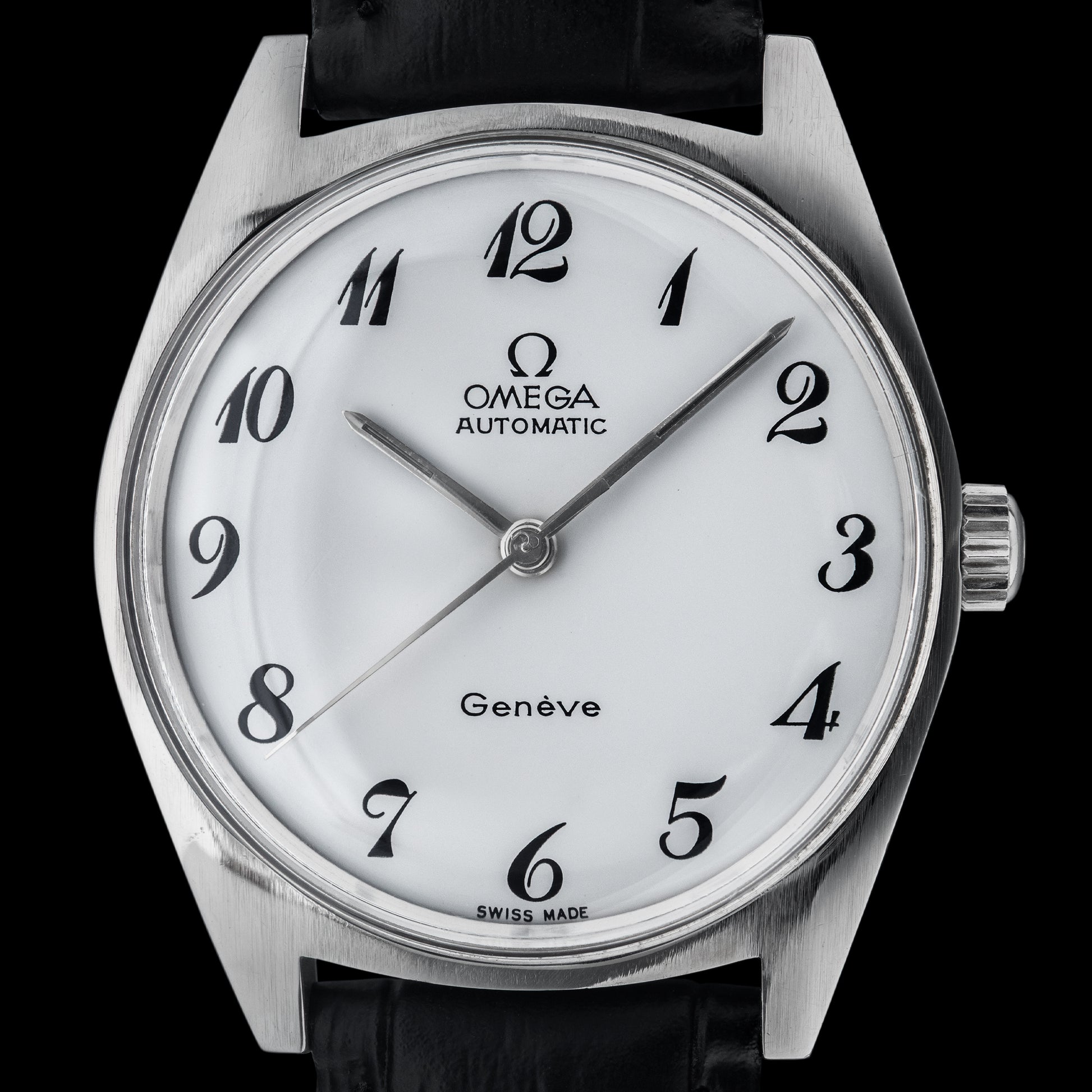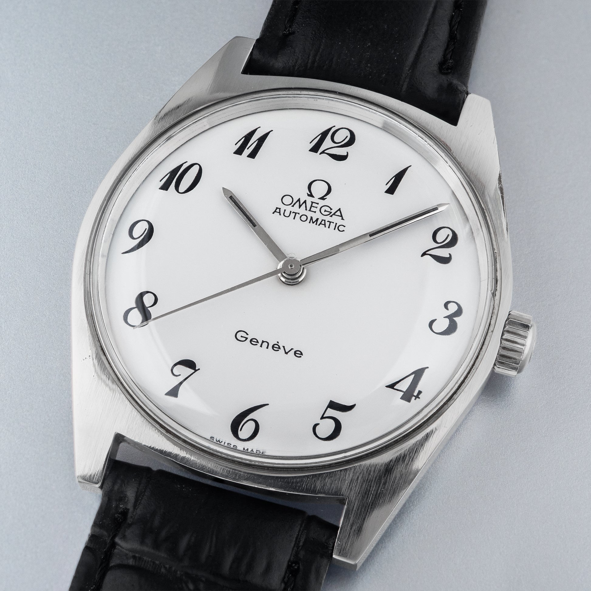 The Genève line was introduced by Omega in the 1950s as a more versatile alternative to its professional tool watches such as the Seamaster, Speedmaster, and Railmaster. Intended for general use, the Genève series gave Omega’s designers greater freedom to experiment with a wide variety of styles and concepts. As a result, the line includes a broad spectrum of models—from bold and unconventional to timelessly elegant. The example offered here belongs to the latter category: a classic, understated dress watch that reflects the refined side of mid-century Omega design.