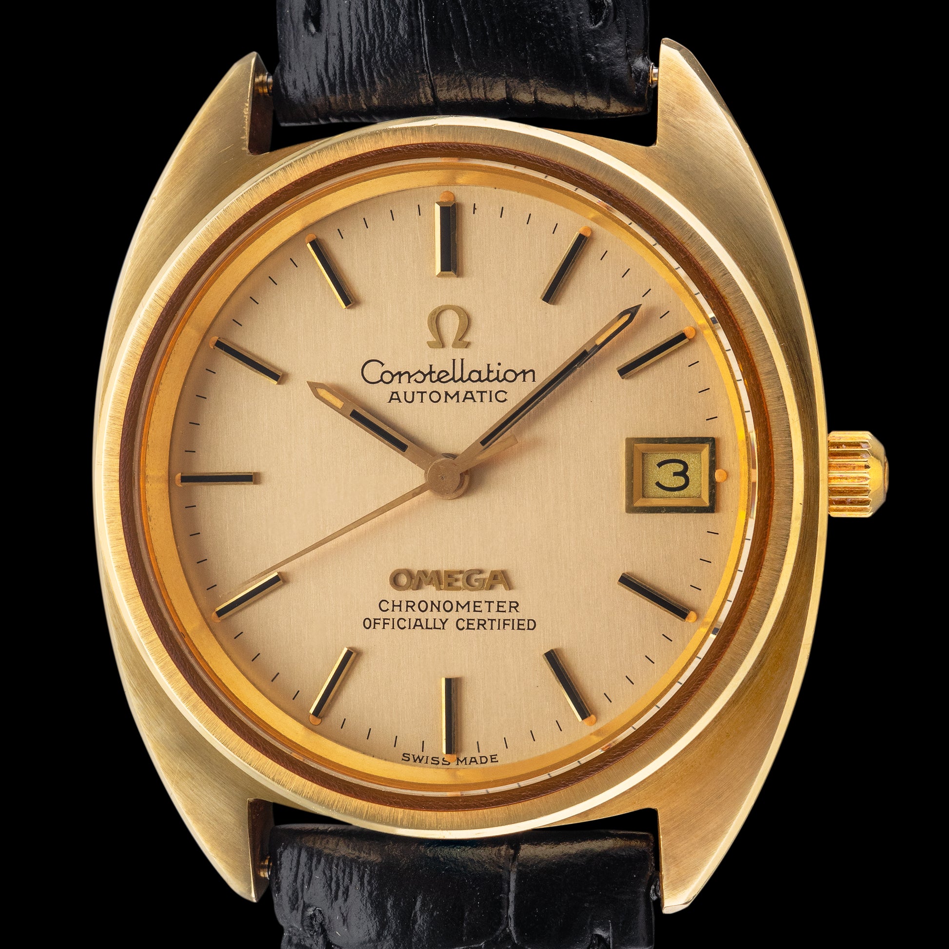 This Omega Constellation from 1971 is one of the last C-Line models still in production. It features a beautiful gold vertically brushed dial and a classic brushed bezel. It also boasts a capped gold case (second only to a solid gold case). This is truly a beautiful piece that any watch collector can appreciate.