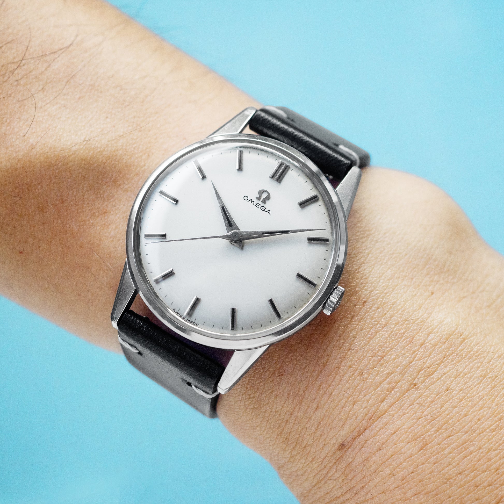 This Omega manual-winding watch from 1960 features a beautifully crisp white dial that adds depth and understated elegance to its classic mid-century design. With its subtle complexity and vintage charm, it’s a piece that any watch collector can appreciate—not only for its unique aesthetic, but also for its place in Omega’s rich history.