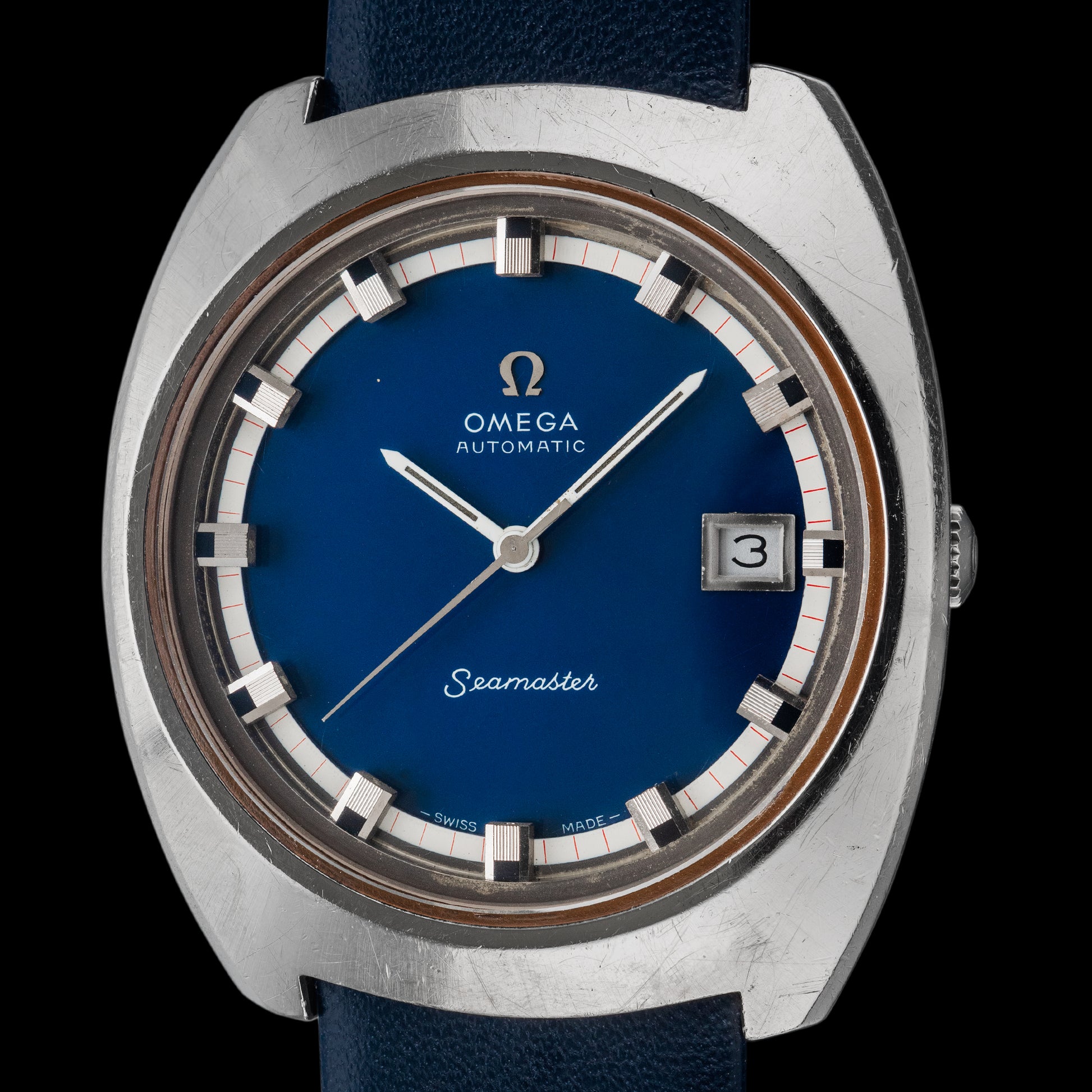 This Omega Seamaster from 1971 features a beautiful blue dial and an unusually large 38mm case for its time. I personally love how the dial and layered indexes plays witht he light. This is truly a beautiful piece that any watch collector can appreciate.
