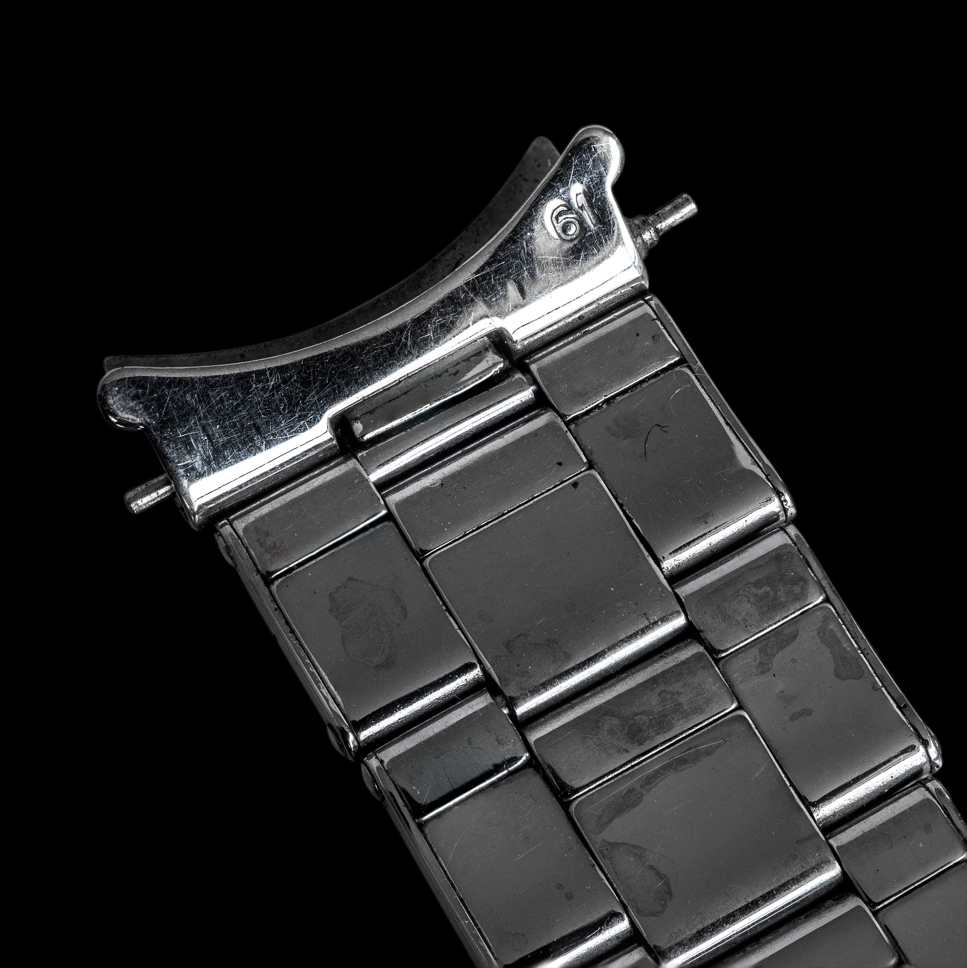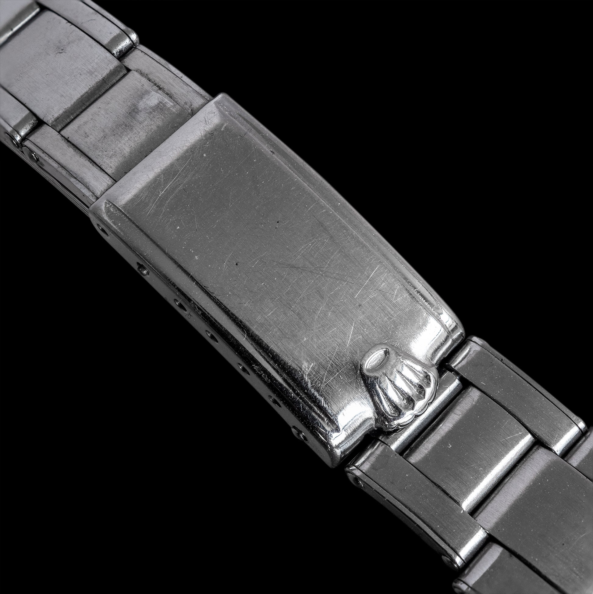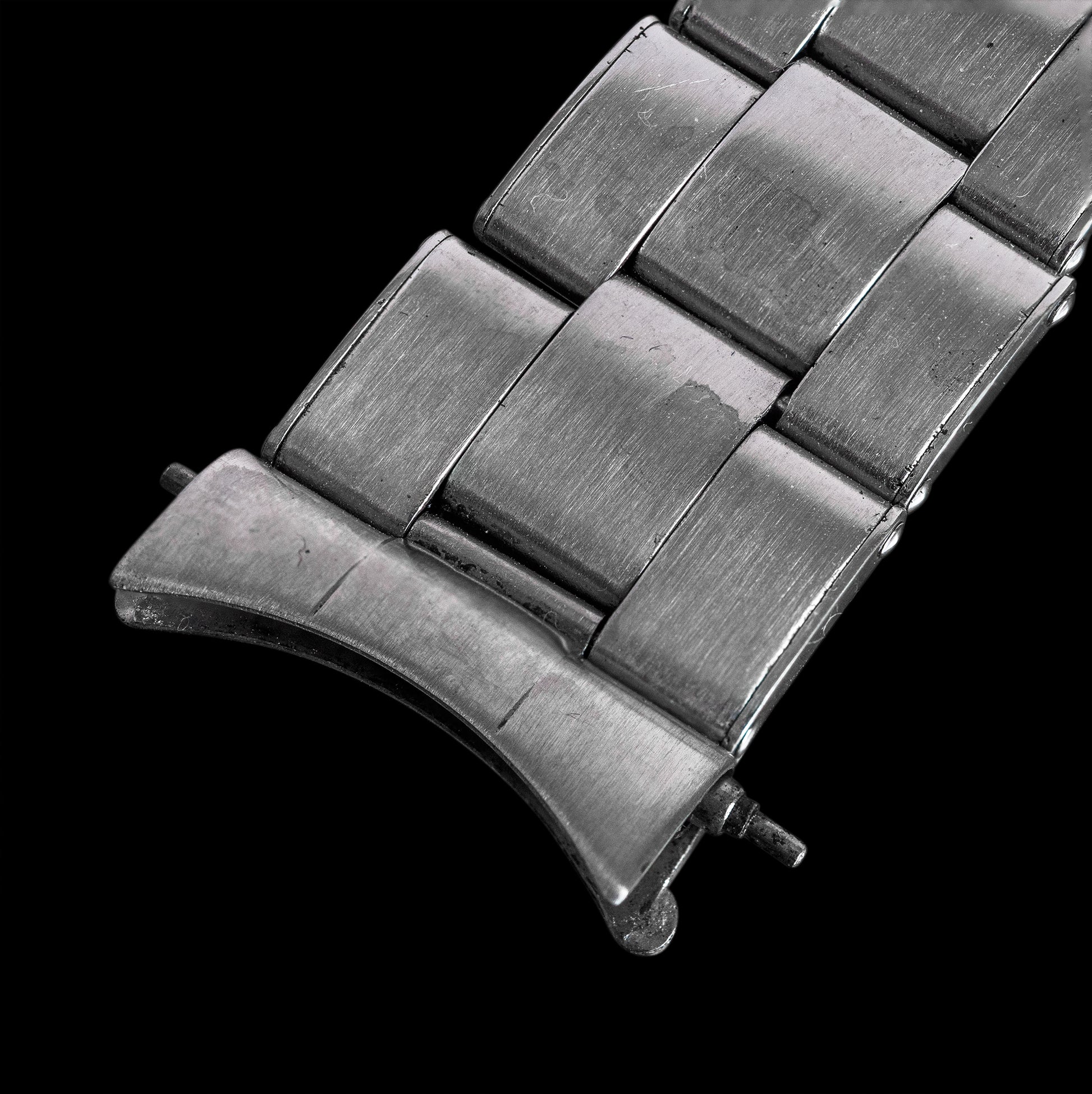 The first-generation Rolex Oyster bracelet is typically called the "rivet bracelet" because of the visible rivets on the outer edge that hold together the hollow, folded links. This gives it a very vintage look and feel. It is also quite light compared to later generations.