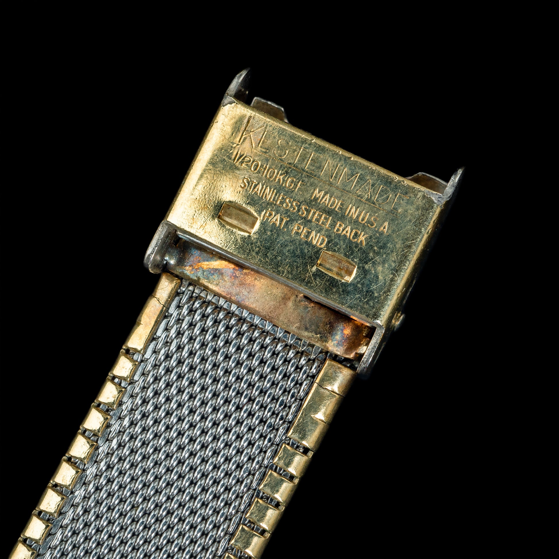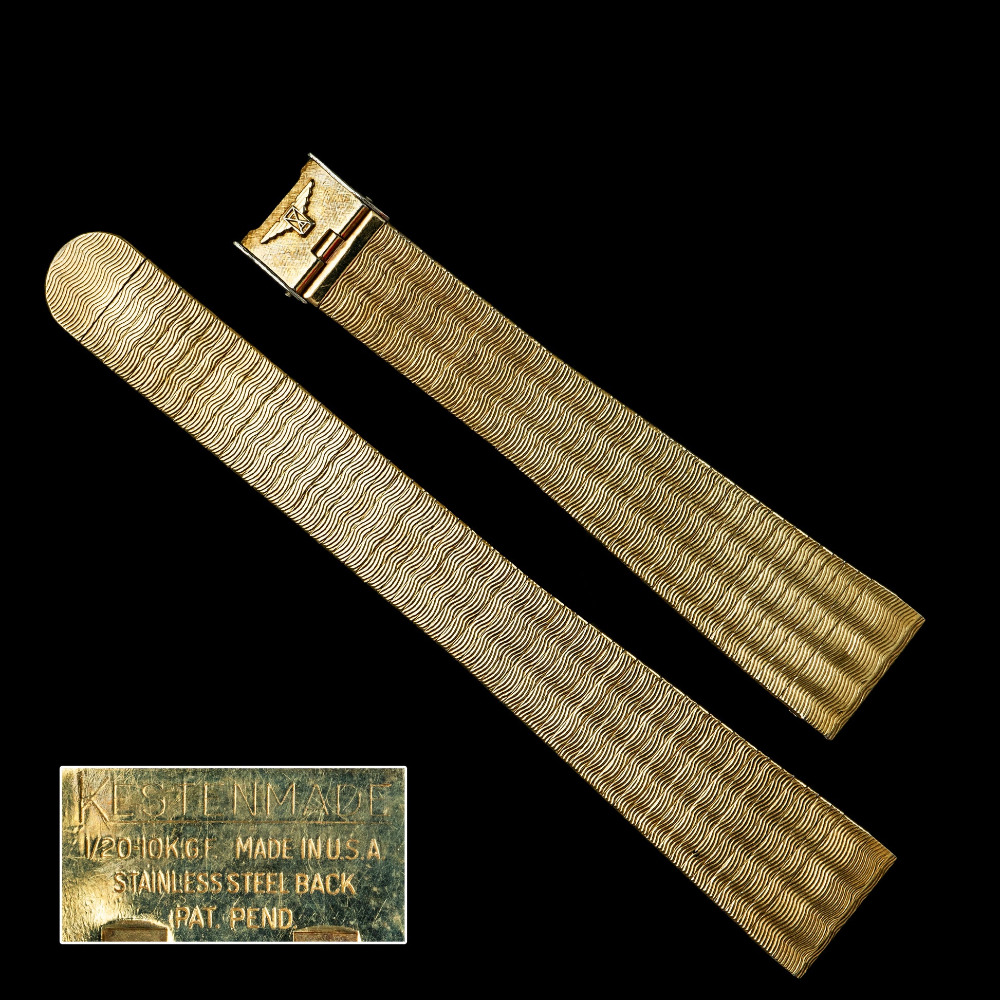 This Longines 10K gold-filled mesh bracelet from the 1960s was made by the famed US jewelry manufacturer, Kestenman Bros. It features a beautiful and rare wave pattern. This will be a great match for any vintage piece.